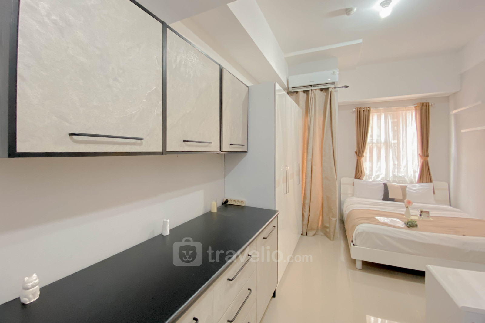 Discover Good and Warm Studio at Transpark Juanda Bekasi Timur Apartment By Travelio. With a size of 23.55 sqm, this apartment offers a cozy and efficient living space. Equipped with essential amenities such as a TV and refrigerator, it is ready to meet your basic needs in style.