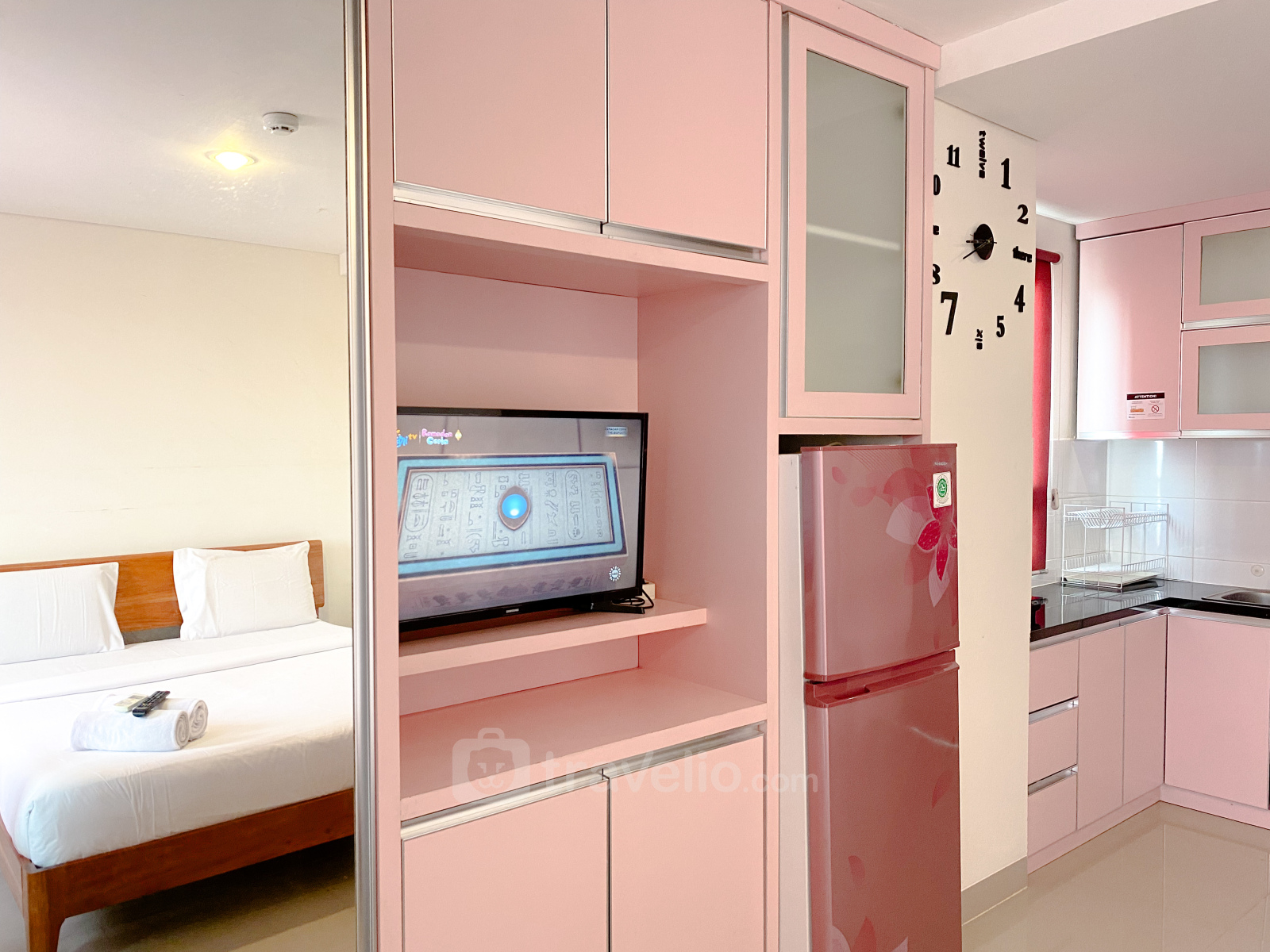 Introducing Good Deal and Cozy Studio Grand Dhika City Jatiwarna Apartment By Travelio. This studio apartment offers comfort and convenience in a prime location.