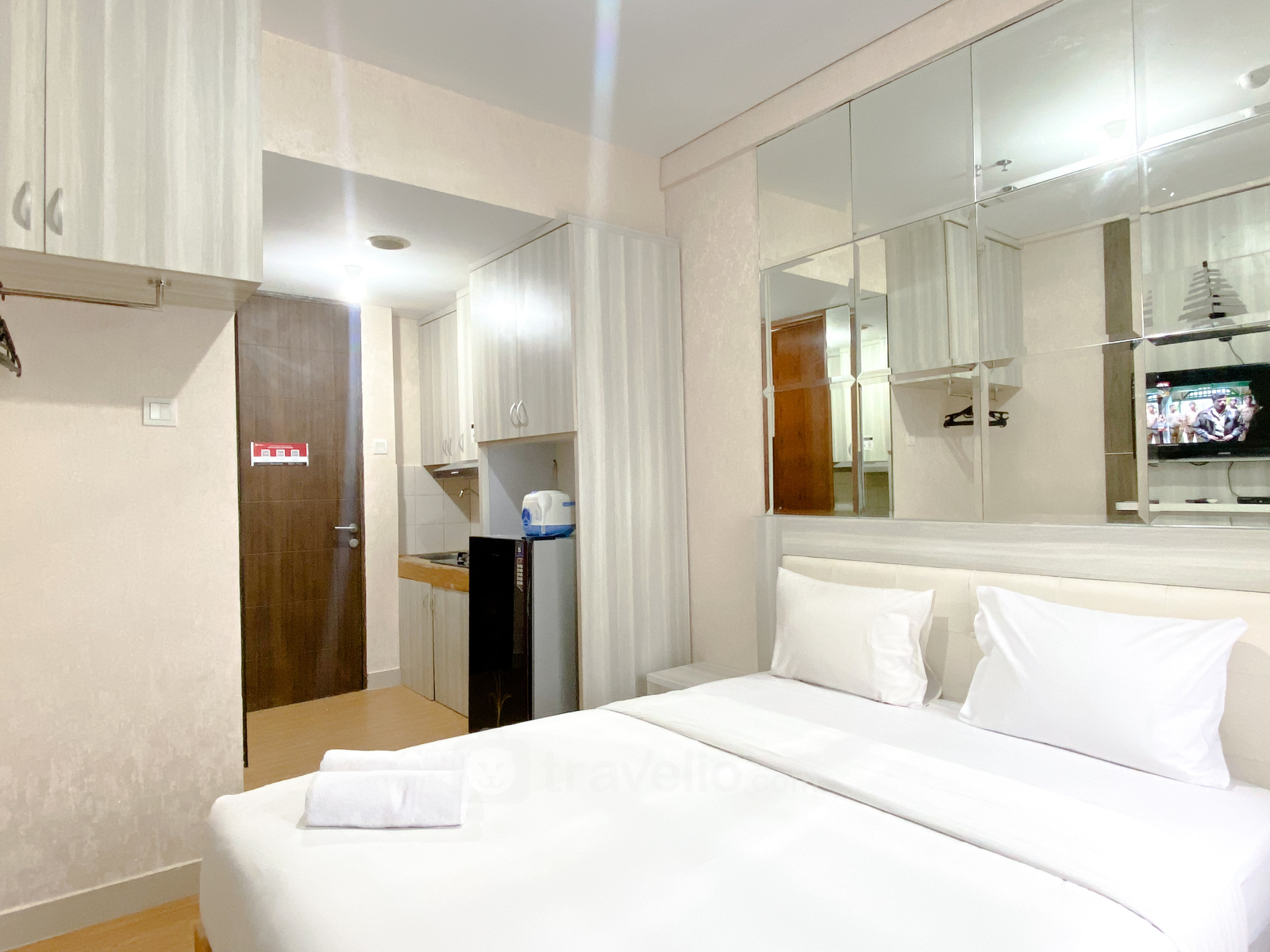 Introducing Restful and Simply Studio Grand Icon Caman Apartment By Travelio. This cozy studio offers a tranquil retreat in the heart of Jatibening, Bekasi, featuring a studio bedroom and 1 bathroom within a compact 16.98 sqm space.