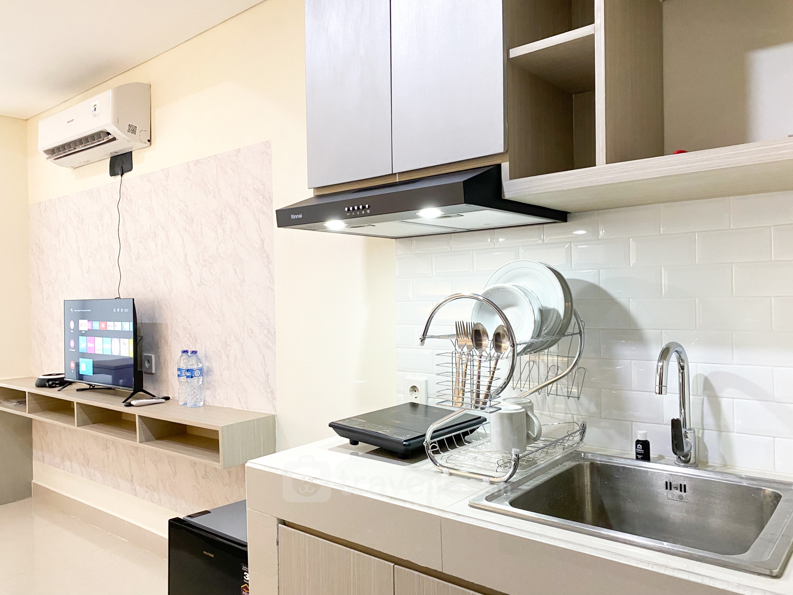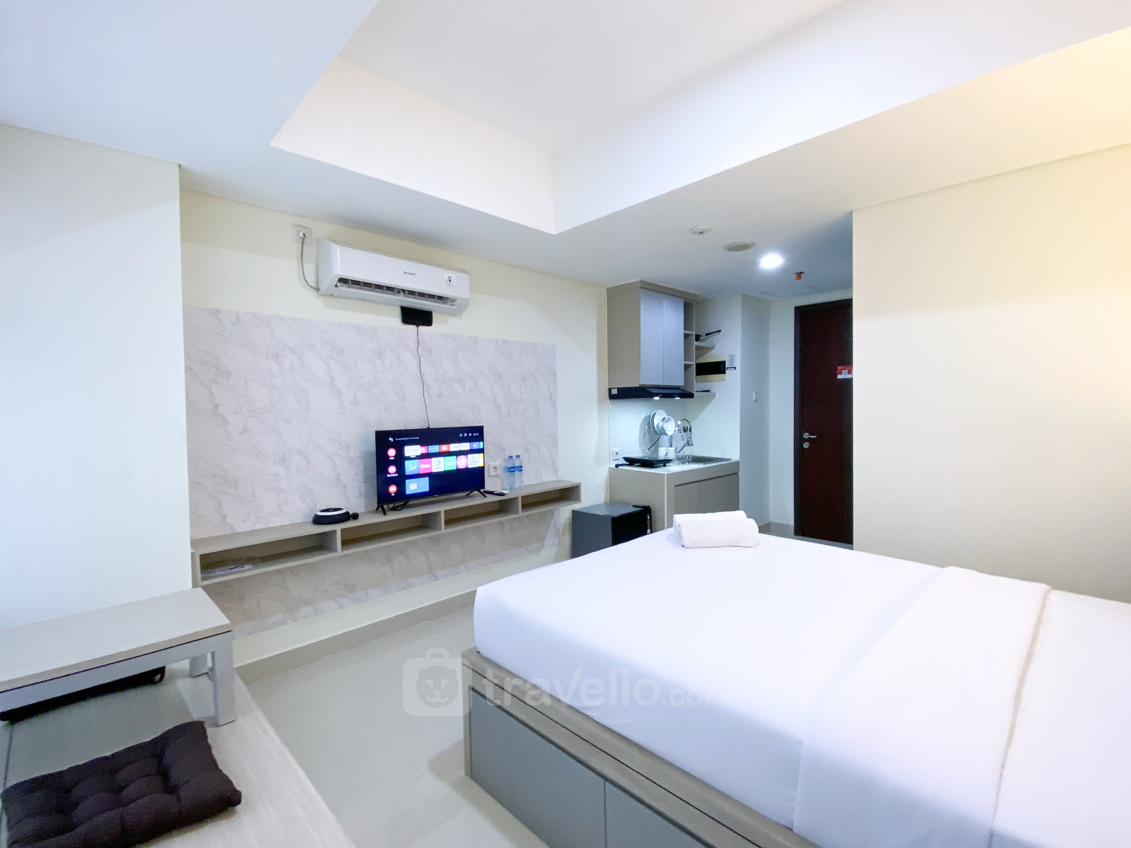Introducing Homey Studio at Pollux Chadstone Apartment By Travelio, a cozy living space nestled in the vibrant neighborhood of Cikarang, West Java. This stylish studio boasts a convenient layout with 1 bathroom, spanning 25 sqm, ideal for individuals seeking comfort and functionality. Situated within the Apartemen Pollux Chadstone complex, residents can enjoy a range of amenities and facilities for a well-rounded lifestyle.