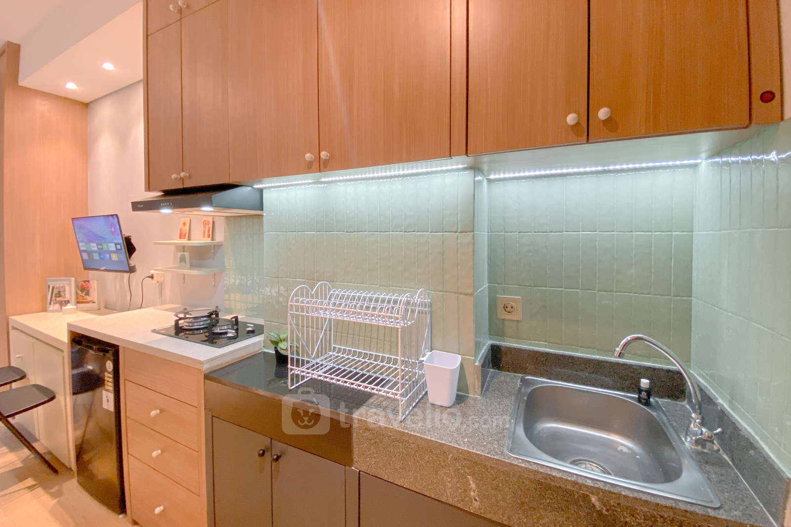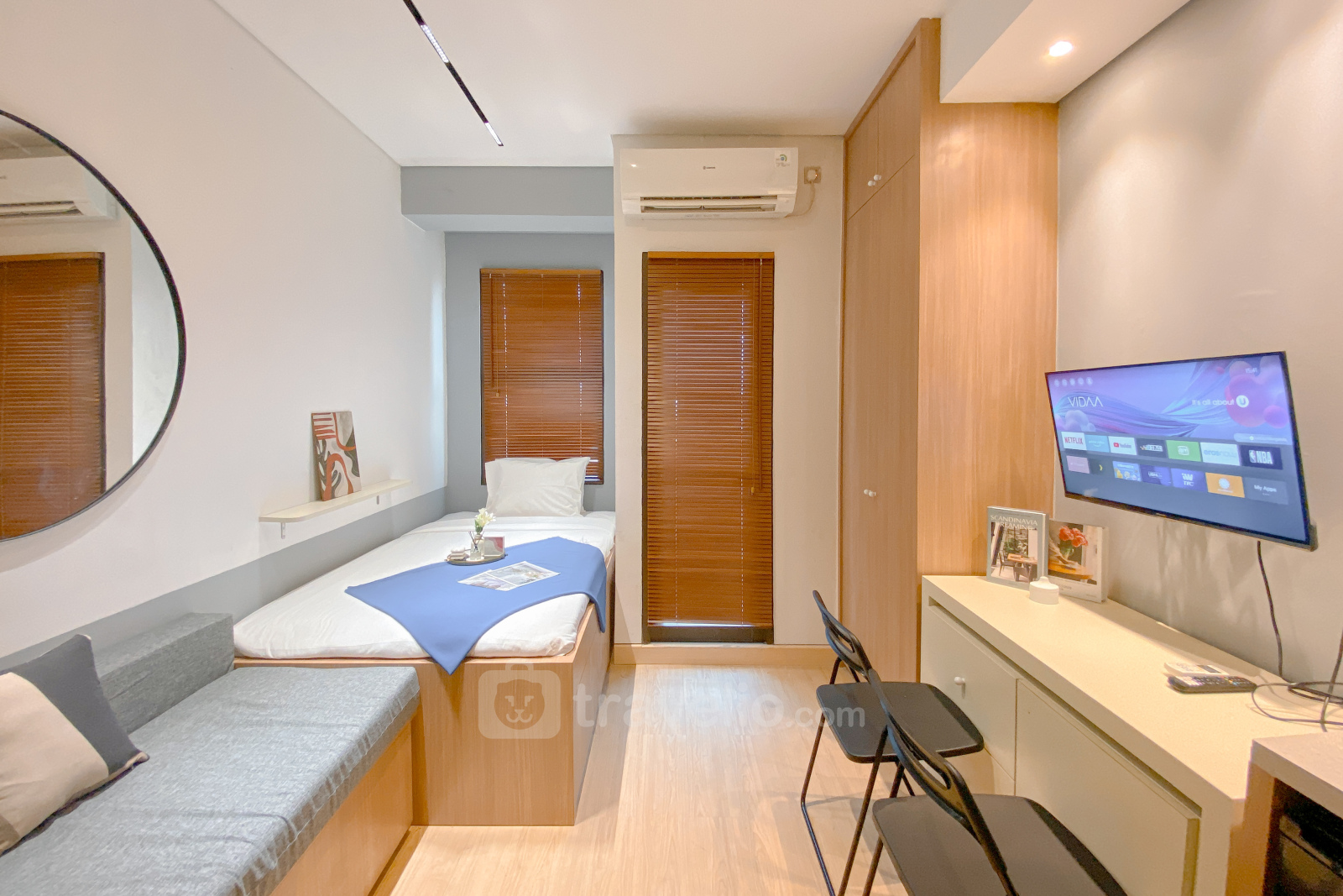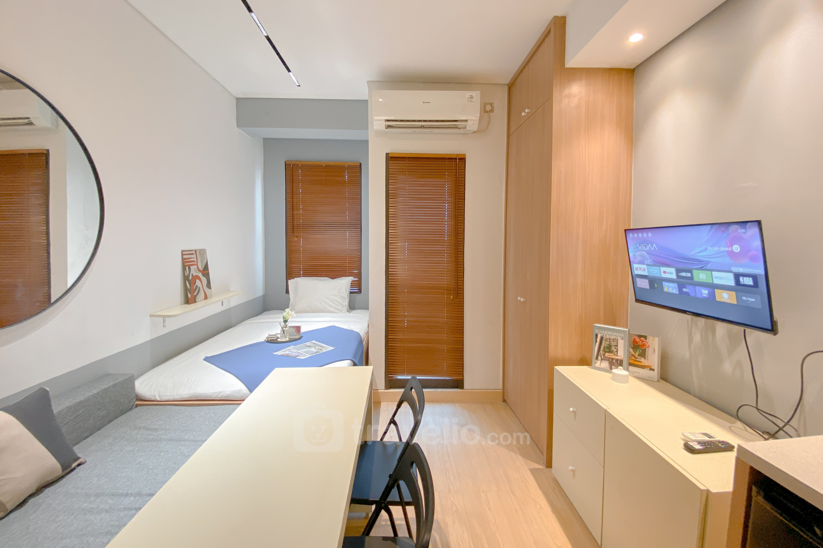 This cozy studio apartment at Transpark Cibubur offers comfortable living in a modern environment. With a size of 22.75 sqm, it is ideal for individuals or couples looking for a practical living space. The unit is equipped with essential amenities like a TV and refrigerator, providing a convenient living experience.