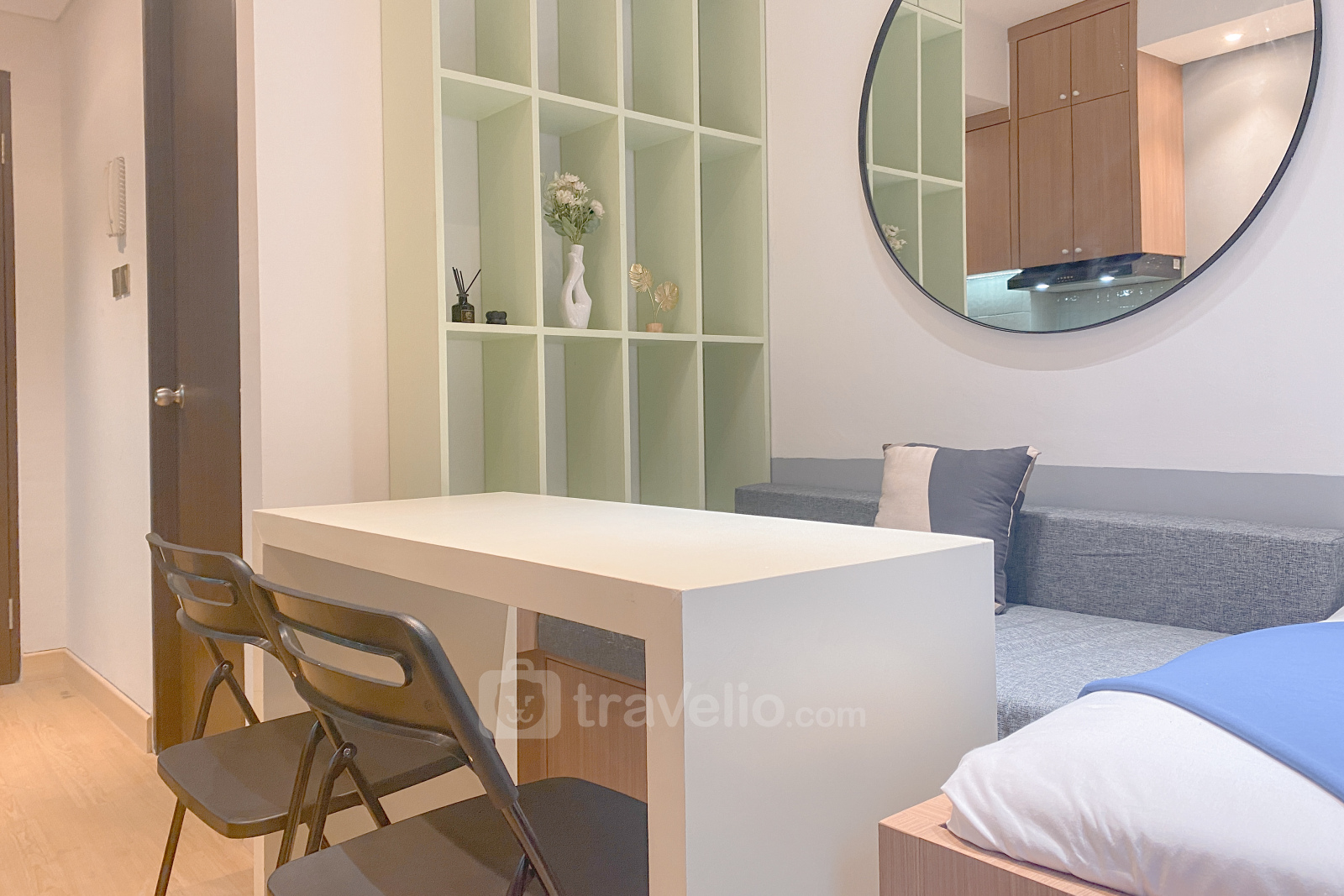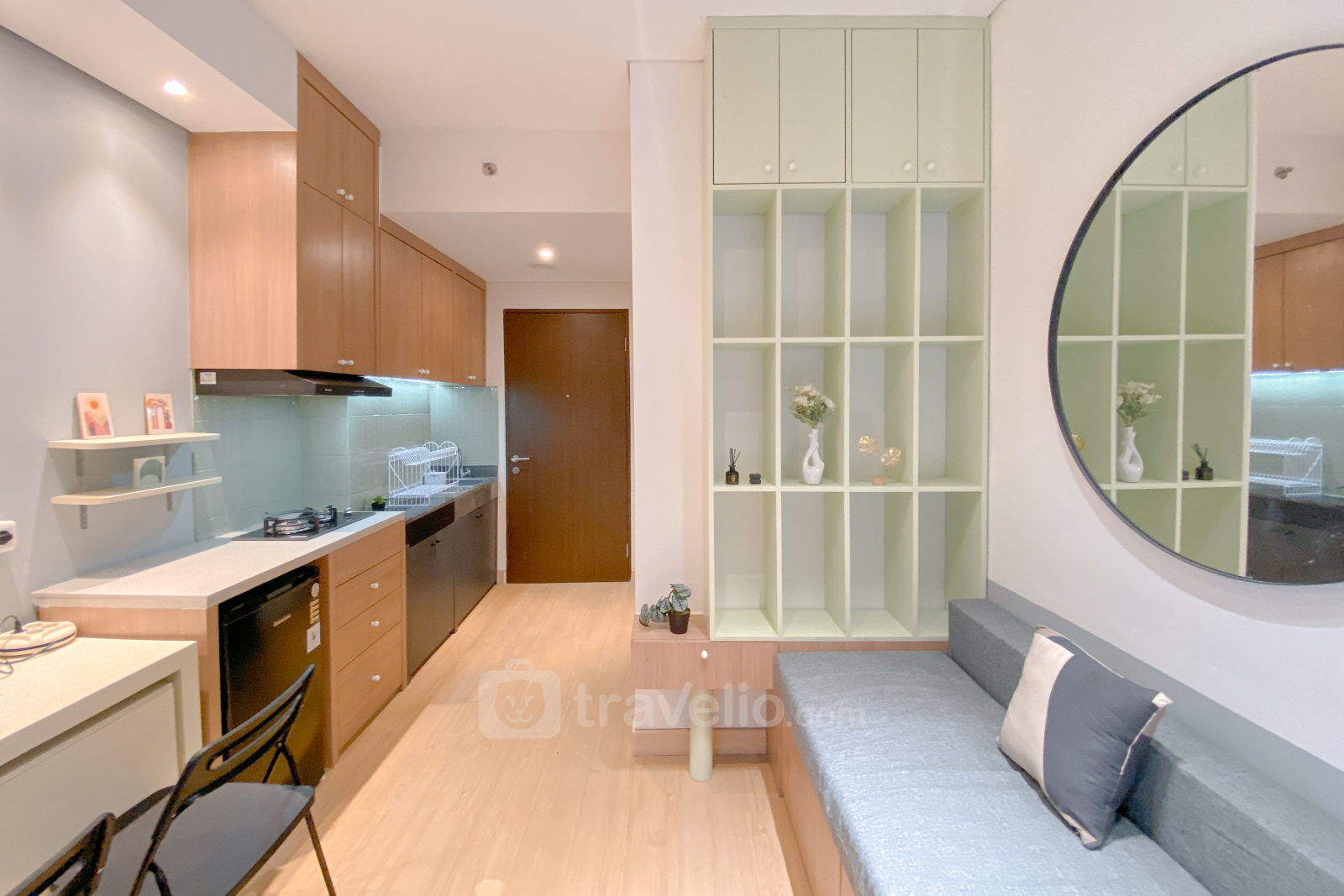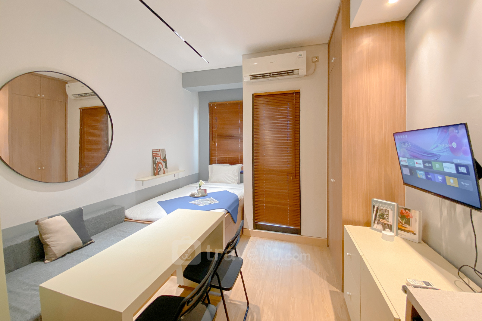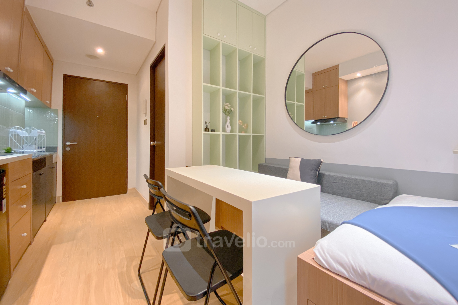 This cozy studio apartment at Transpark Cibubur offers comfortable living in a modern environment. With a size of 22.75 sqm, it is ideal for individuals or couples looking for a practical living space. The unit is equipped with essential amenities like a TV and refrigerator, providing a convenient living experience.