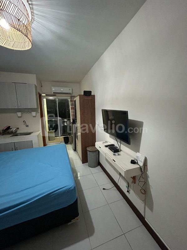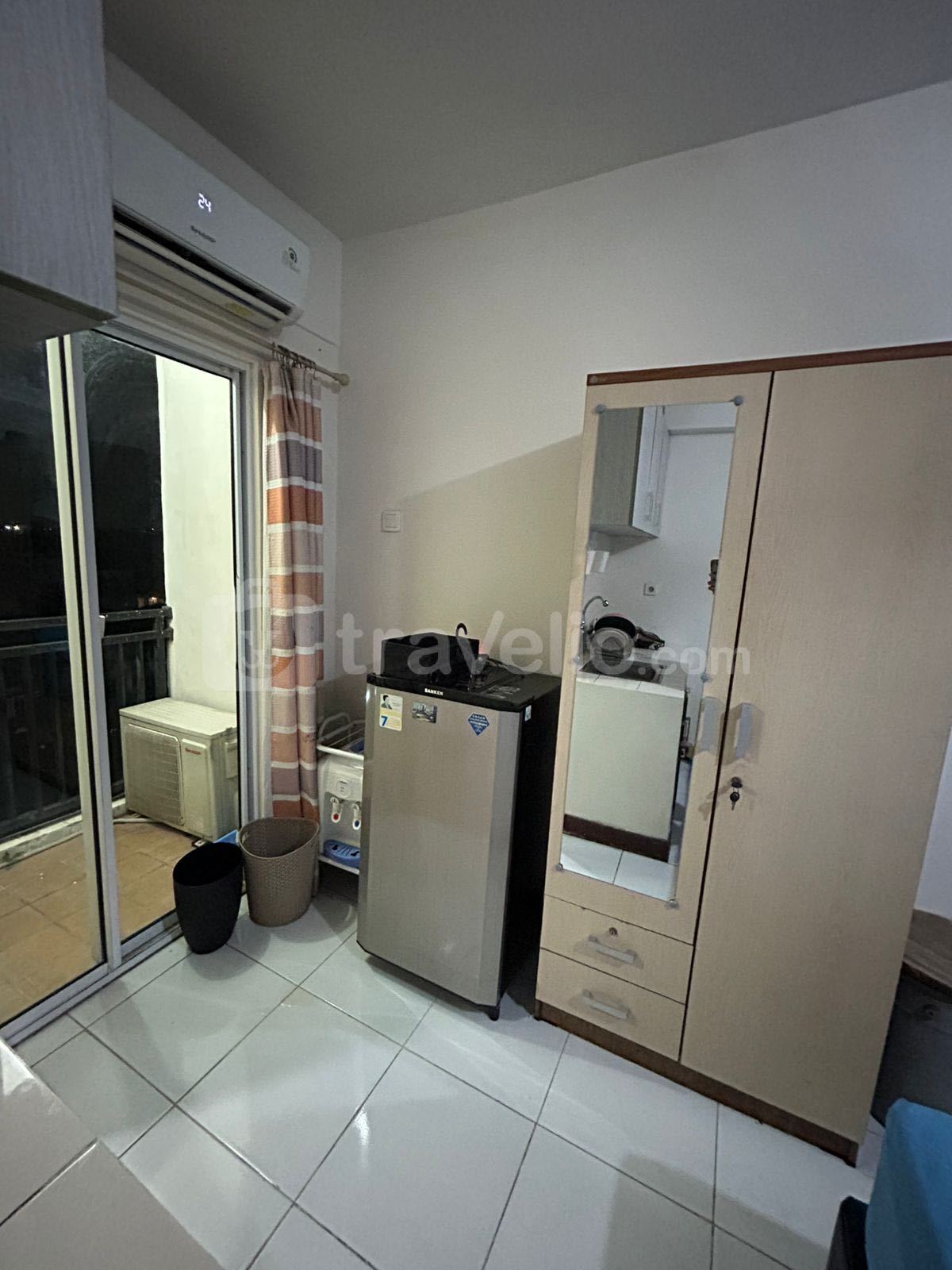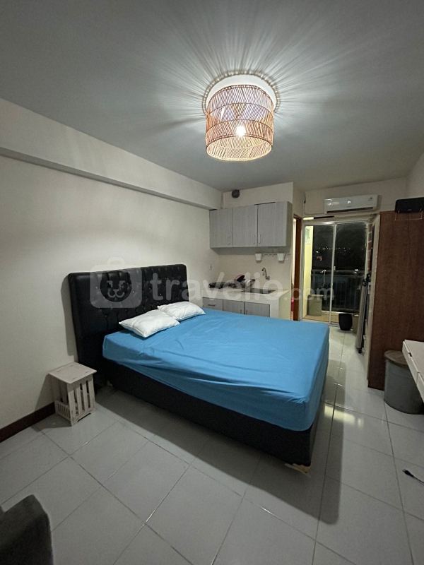 24-Hour Security, ATM On Site, Access Card, CCTV In Public Area, Cafe, Elevator, Fitness Center, Laundry (Charge), Playground, Supermarket, Swimming Pool would give you an remarkable experience of staying. Facilitated with 01 bed, Queen Bed (160x200) covered with star-hotel quality linen, air conditioner (AC), television, free Wi-Fi access in room, toiletries, and kitchenware. Warm and Tidy Studio at Cinere Resort Apartment By Travelio is available to rent for daily, monthly, and yearly.