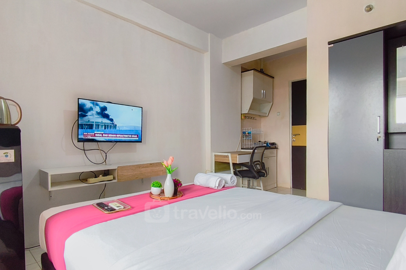 Enjoy a minimalist and restful living experience at this unit. This studio unit features a studio bedroom with 1 bathroom and a size of 20.06 sqm, making it a perfect choice for individuals, young professionals, or travelers seeking a practical and cozy living space in Gresik. The unit is equipped with a TV, refrigerator, water heater, kitchen cabinet, and kitchen scissors, ensuring convenience for daily needs and a comfortable stay. Located in the Kebomas area, this property is part of Apartemen Gunawangsa Gresik, situated at Jl. Veteran, Gending Wetan, Singosari, Kebomas, Gresik, Jawa Timur, 61123. Kebomas is one of the prime areas in Gresik, known for its proximity to industrial zones, business centers, and essential public facilities, making it a strategic and convenient place to live while still offering a peaceful residential environment.