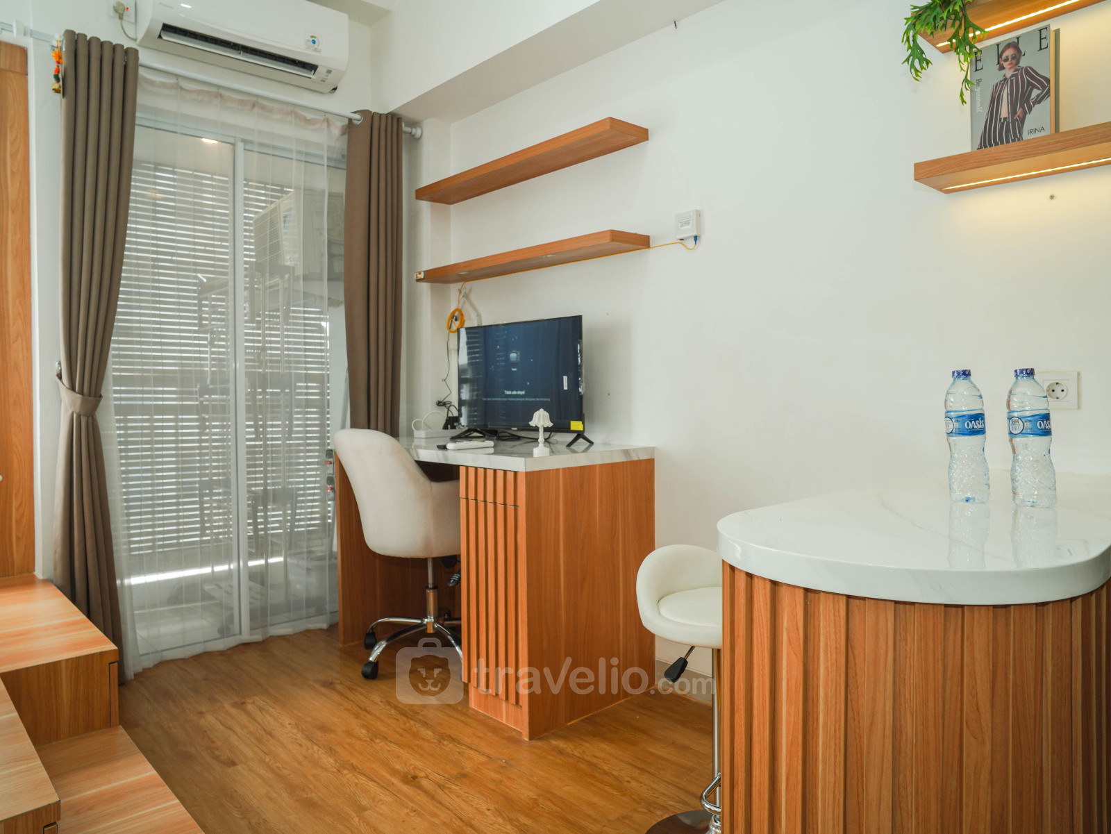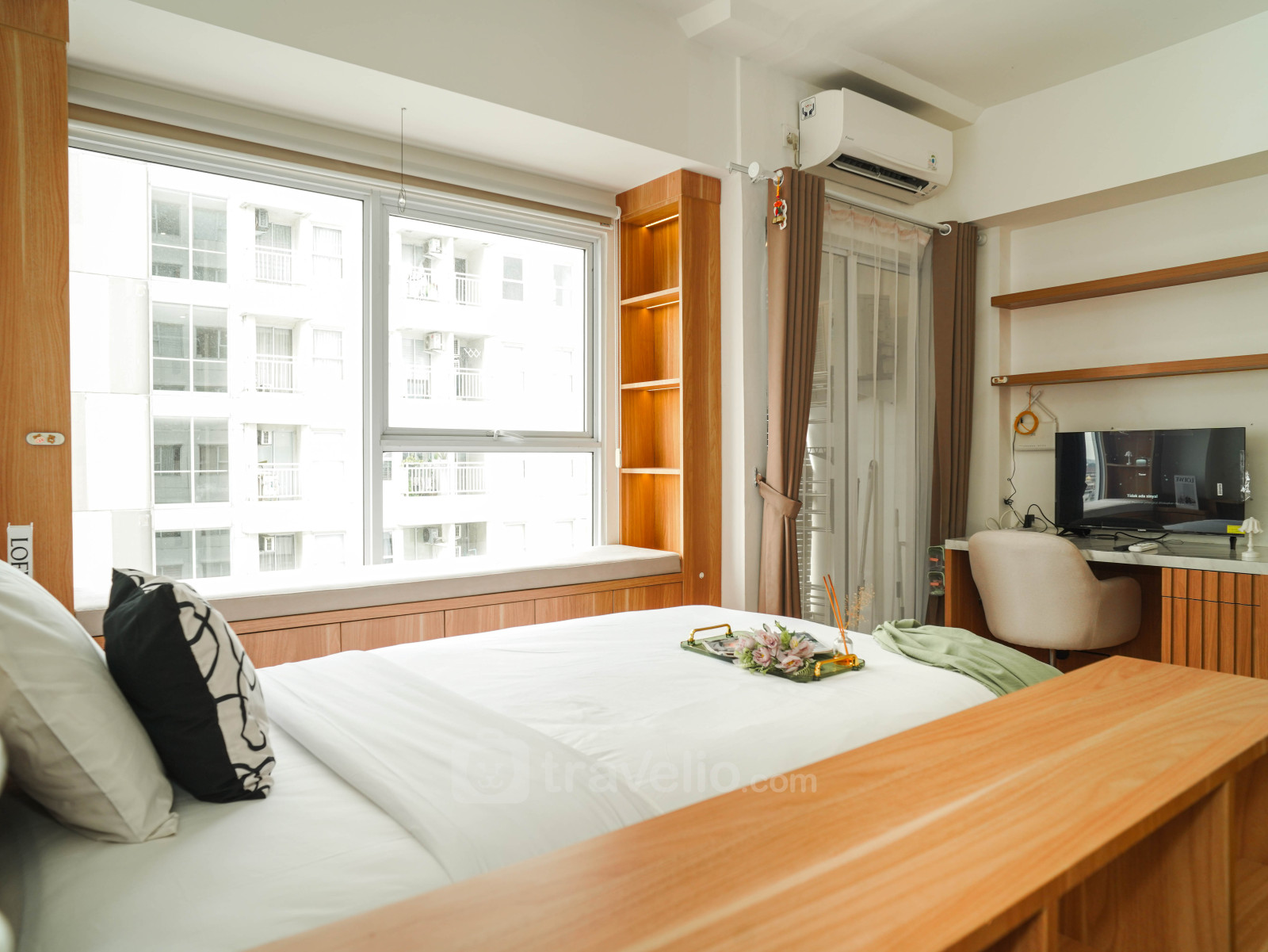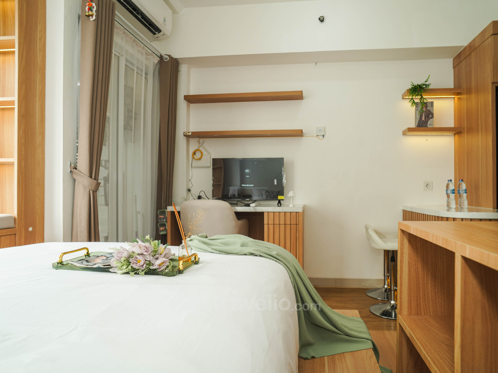 Enjoy a wooden touch studio, 32.19 sqm, designed with a functional platform bed (super single bed) that comfortably accommodates 1 guest. This unit is perfect for solo travelers seeking a practical and cozy living space. Located in Kalideres, West Jakarta, it offers convenient access to transportation, public facilities, and lifestyle destinations.