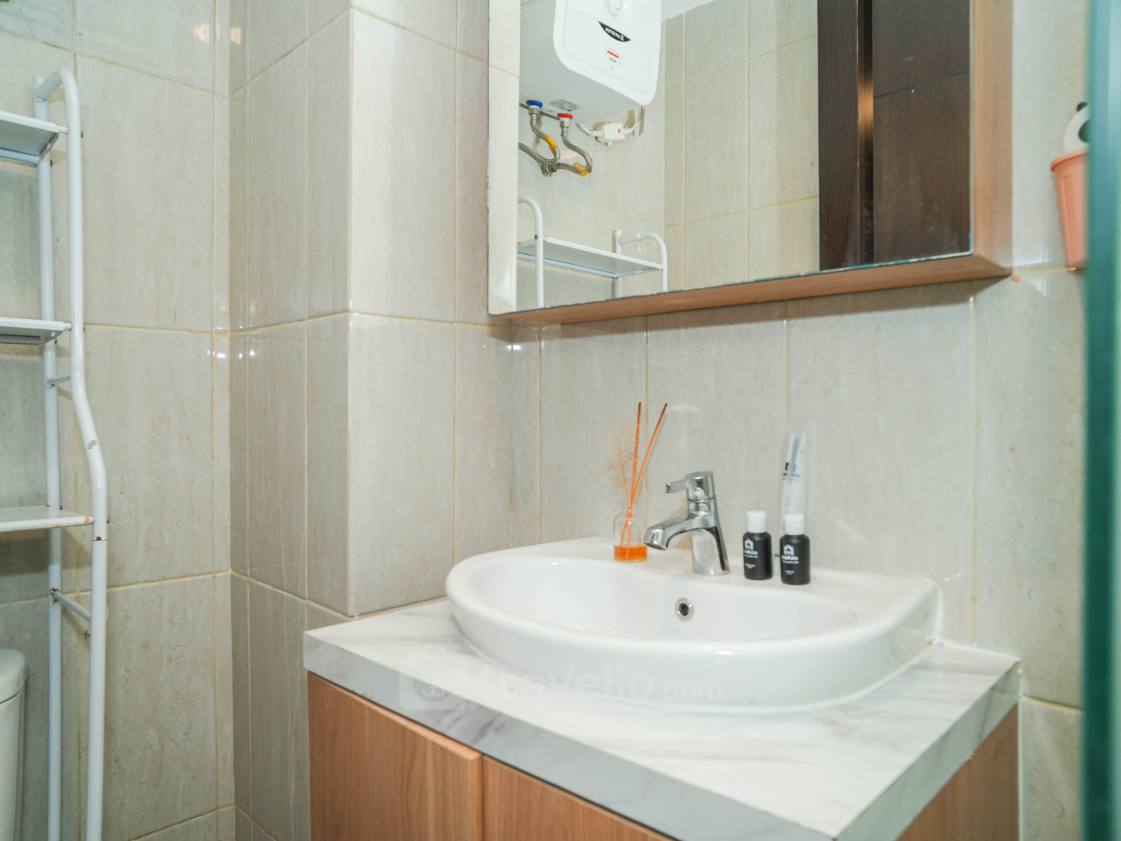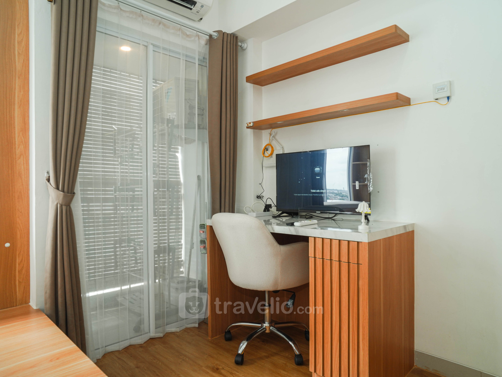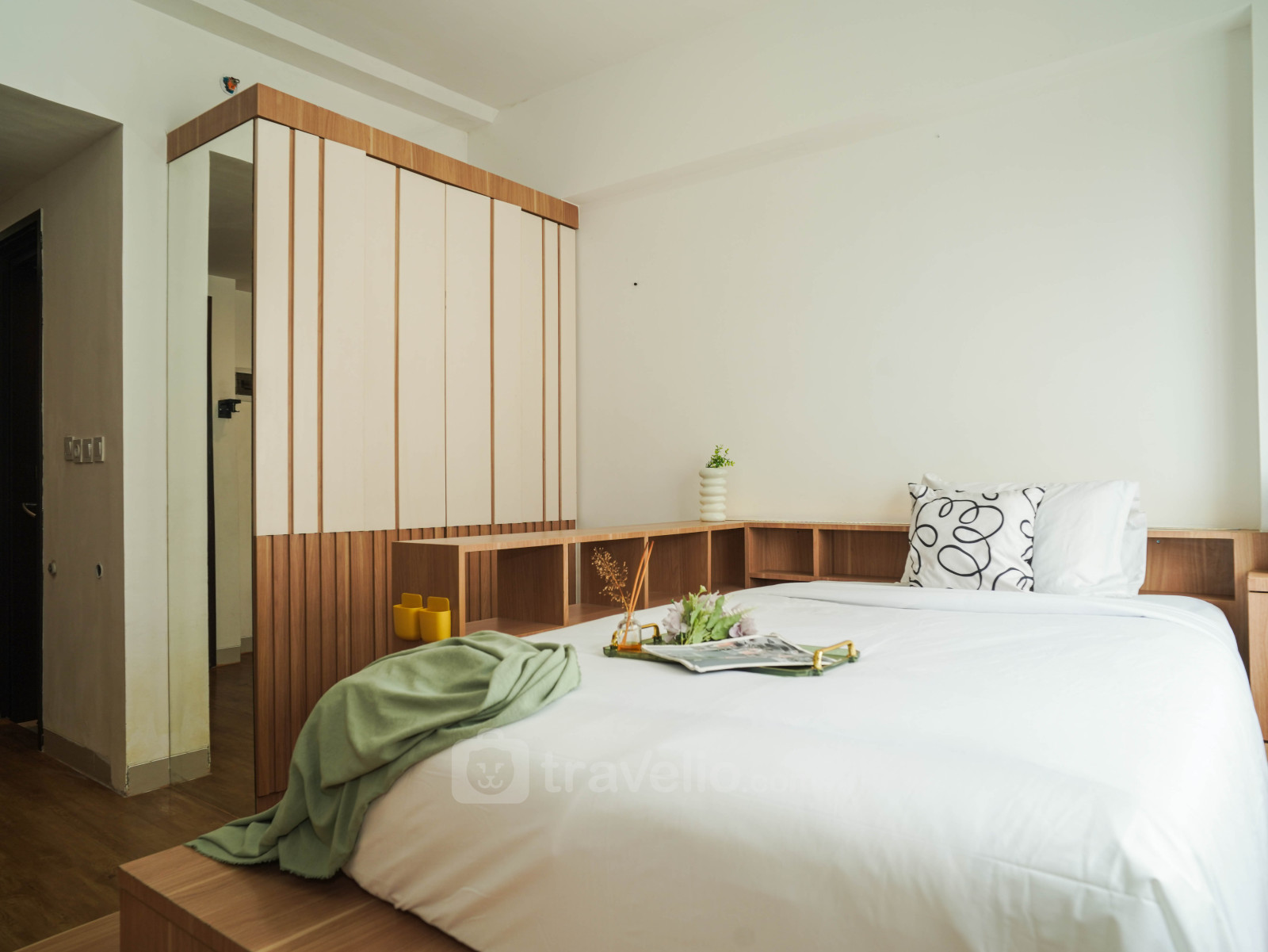 Enjoy a wooden touch studio, 32.19 sqm, designed with a functional platform bed (super single bed) that comfortably accommodates 1 guest. This unit is perfect for solo travelers seeking a practical and cozy living space. Located in Kalideres, West Jakarta, it offers convenient access to transportation, public facilities, and lifestyle destinations.