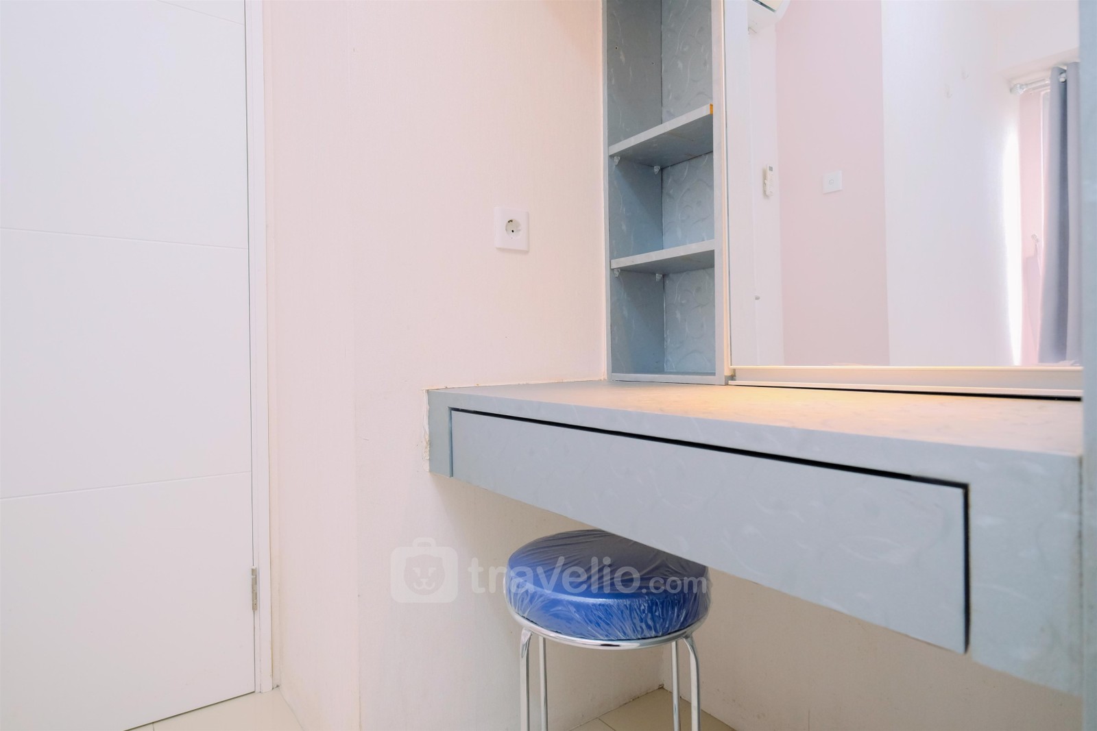 Introducing Comfy and Strategic 2BR Apartment at Bassura City By Travelio. This unit features 2 bedrooms, 1 bathroom, and a size of 28.56 square meters, providing a cozy environment for residents.