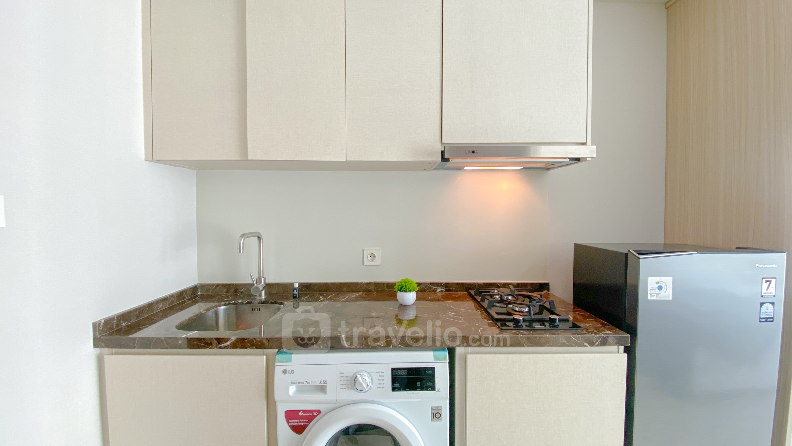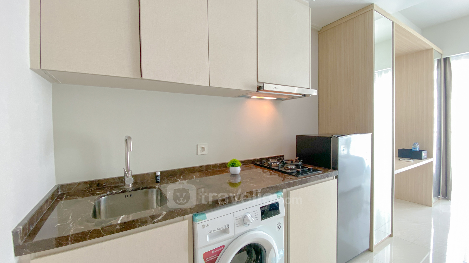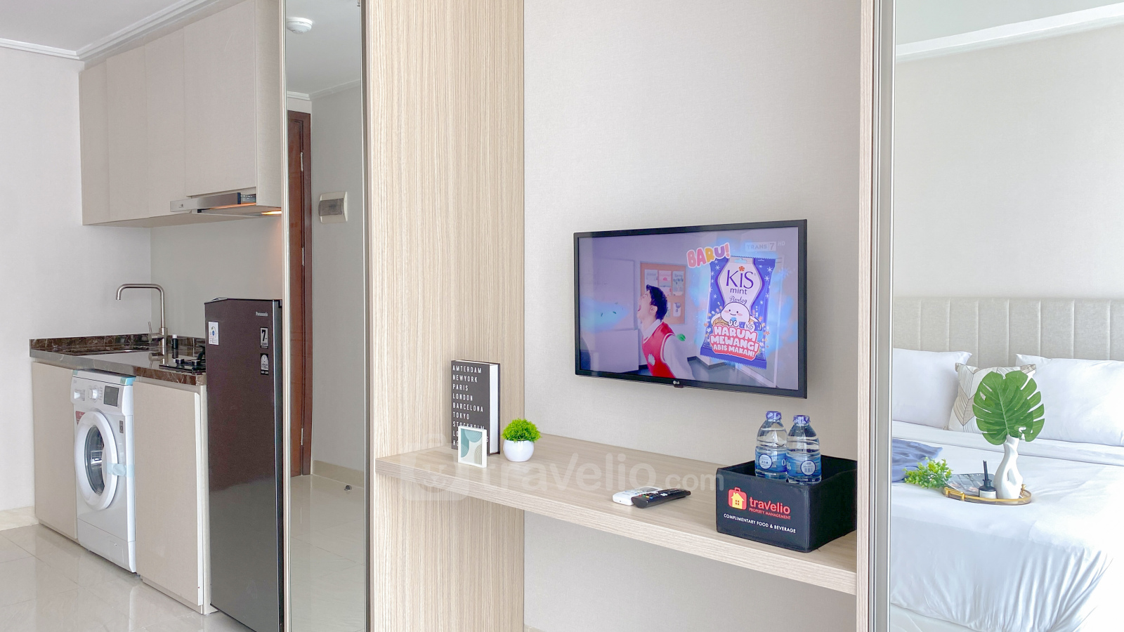 Cozy Stay Studio at Green Sedayu Apartment by Travelio offers a comfortable and convenient living space in a prime location in West Jakarta. With a studio layout, this unit provides a practical and modern living experience, ideal for singles or couples. The apartment spans 28 sqm and is equipped with essential facilities to cater to your everyday needs, including a TV, refrigerator, water heater, and washing machine.