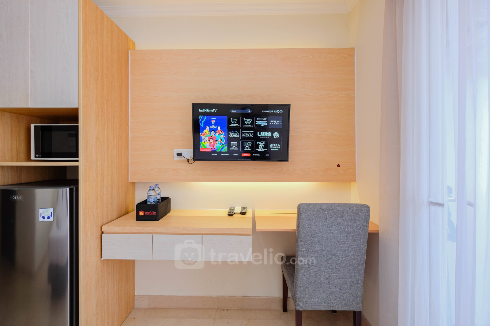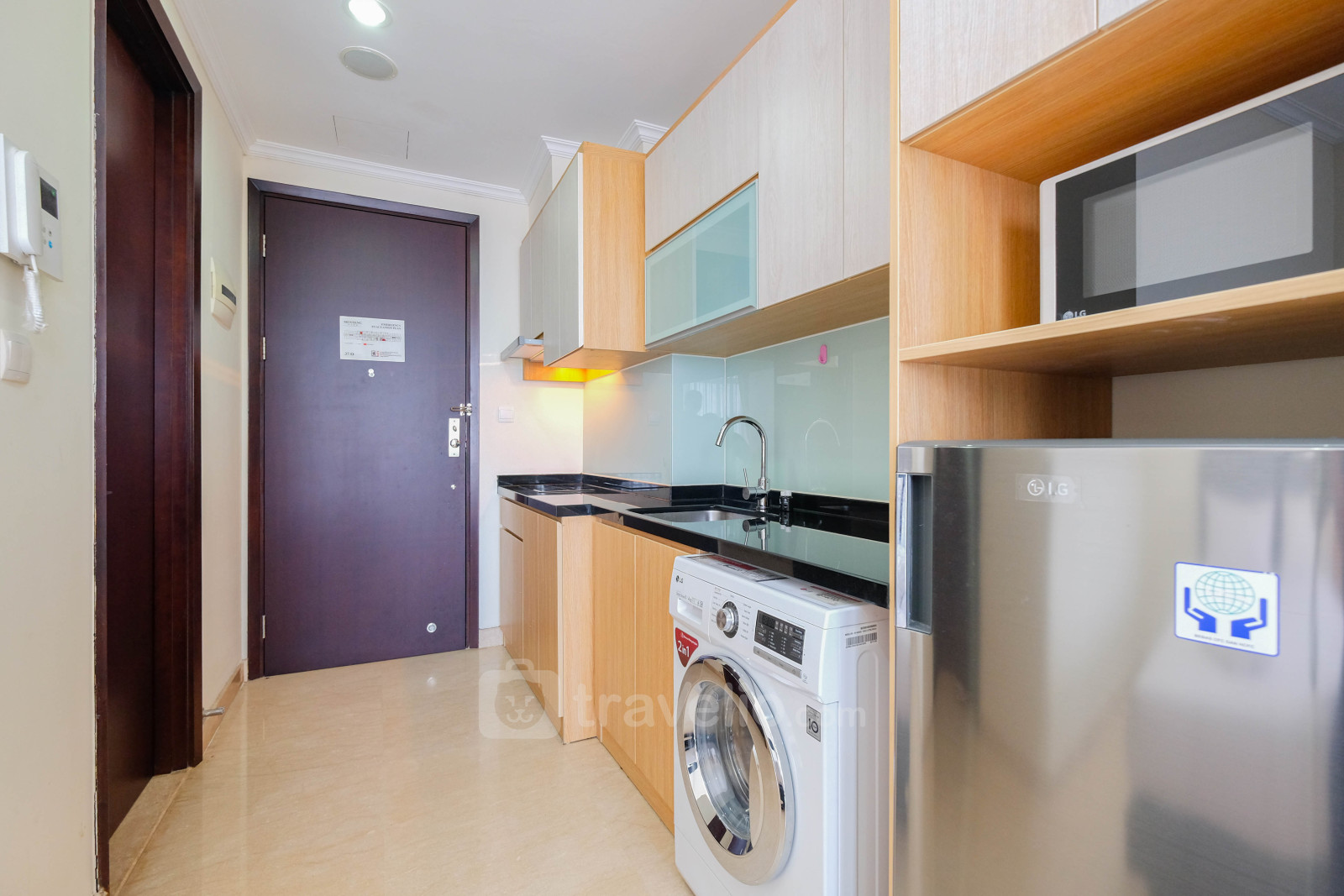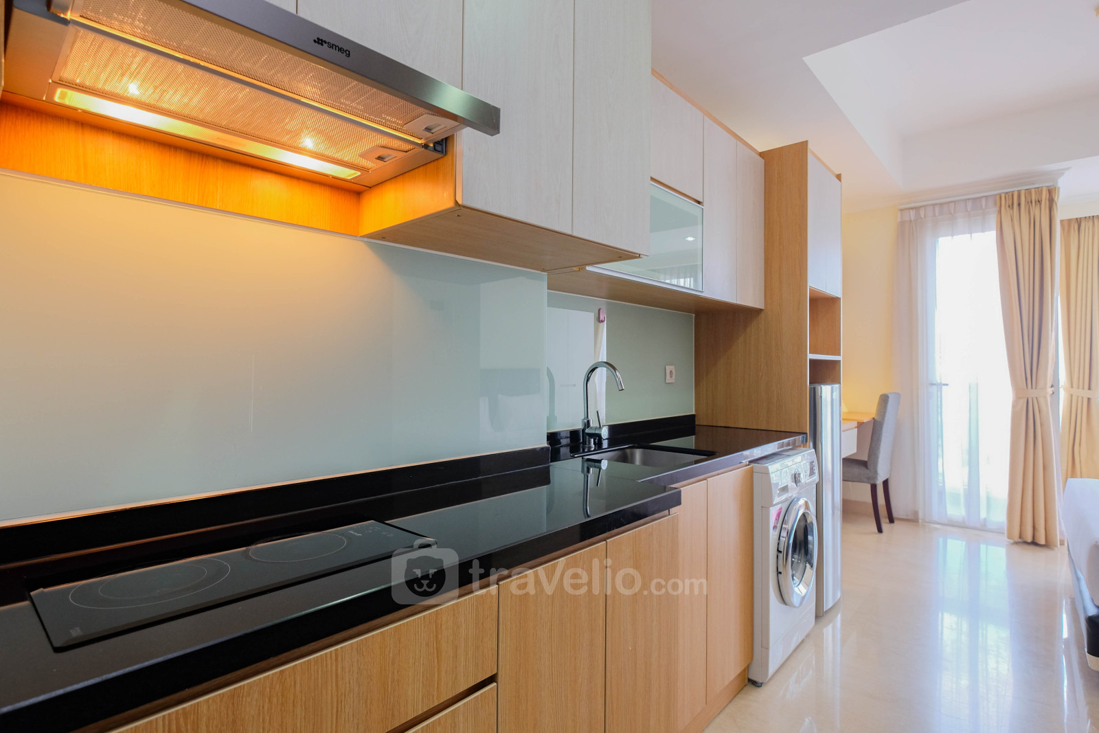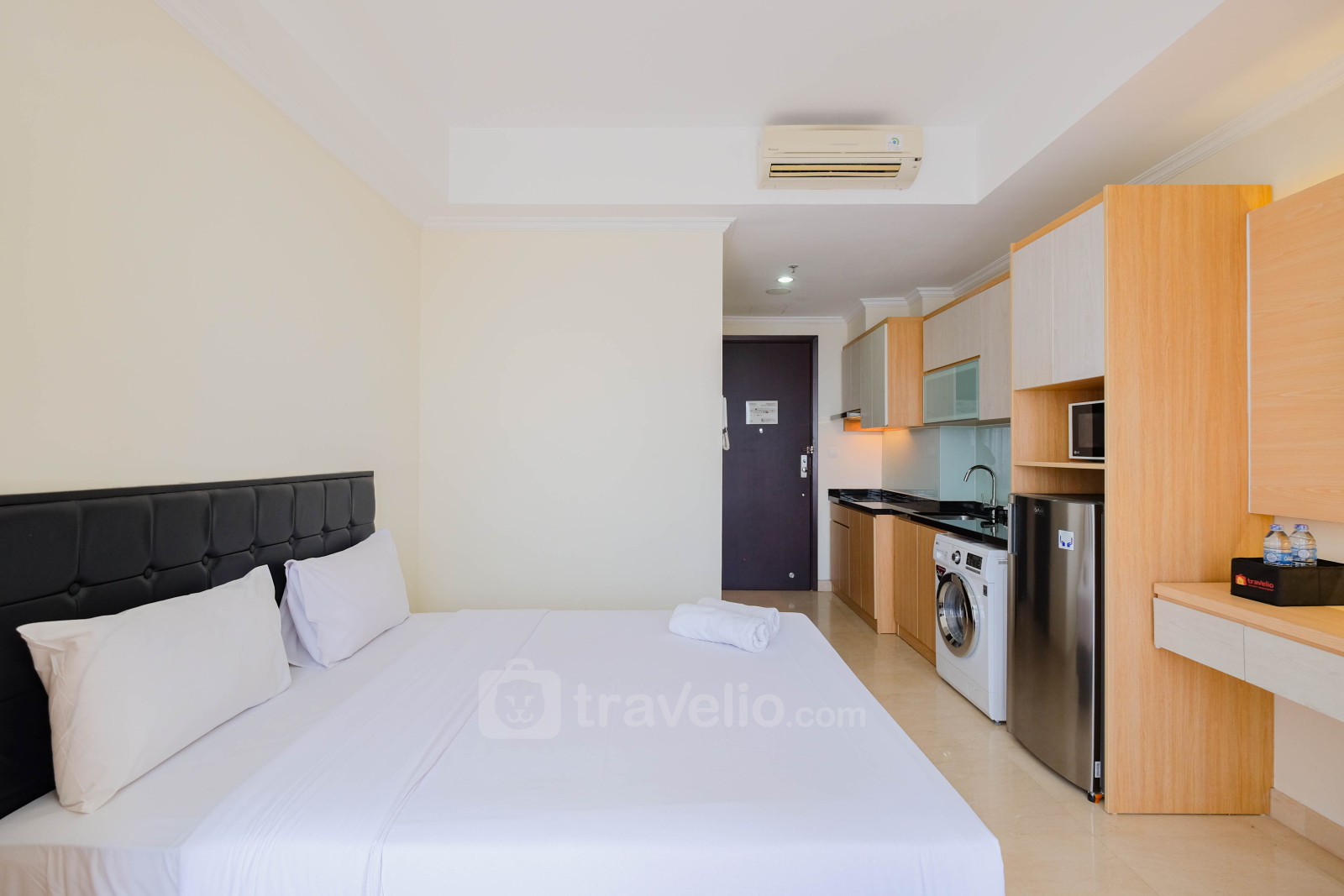 This studio type apartment unit is equipped with a Queen size bed (160 x 200) which is perfect for you to take a break from vacation or business trips. In addition, this unit has an area of 28 and a touch of decoration so you can feel relaxed and comfortable. Another thing that needs to be known is that this unit has facilities and equipment that will make your stay more interesting, such as a washing machine, water heater. This apartment unit is available for rent on a daily, monthly and yearly basis.