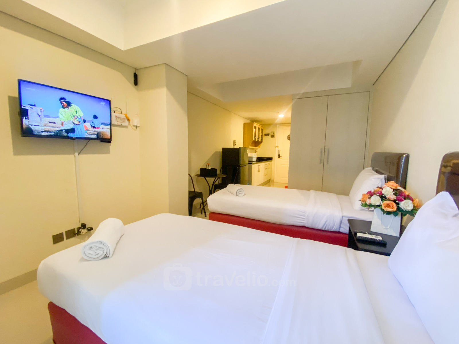 Experience Minimalist Studio Room Marquis de Lafayette Apartment By Travelio. Perfect for individuals or couples, this studio boasts a sleek design and functional layout, featuring a cozy bedroom area, a well-equipped bathroom, and essential amenities for a convenient stay. Situated in the heart of Semarang Tengah, residents can enjoy easy access to various facilities and attractions. The apartment unit comes with essential facilities including a TV, refrigerator, and water heater, ensuring a comfortable living experience. Moreover, the building offers additional amenities such as a playground, restaurant, and swimming pool, providing opportunities for leisure and relaxation. Whether you're looking to explore nearby landmarks, indulge in delicious local cuisine, or simply unwind by the pool, this apartment offers a convenient and comfortable stay in Semarang.