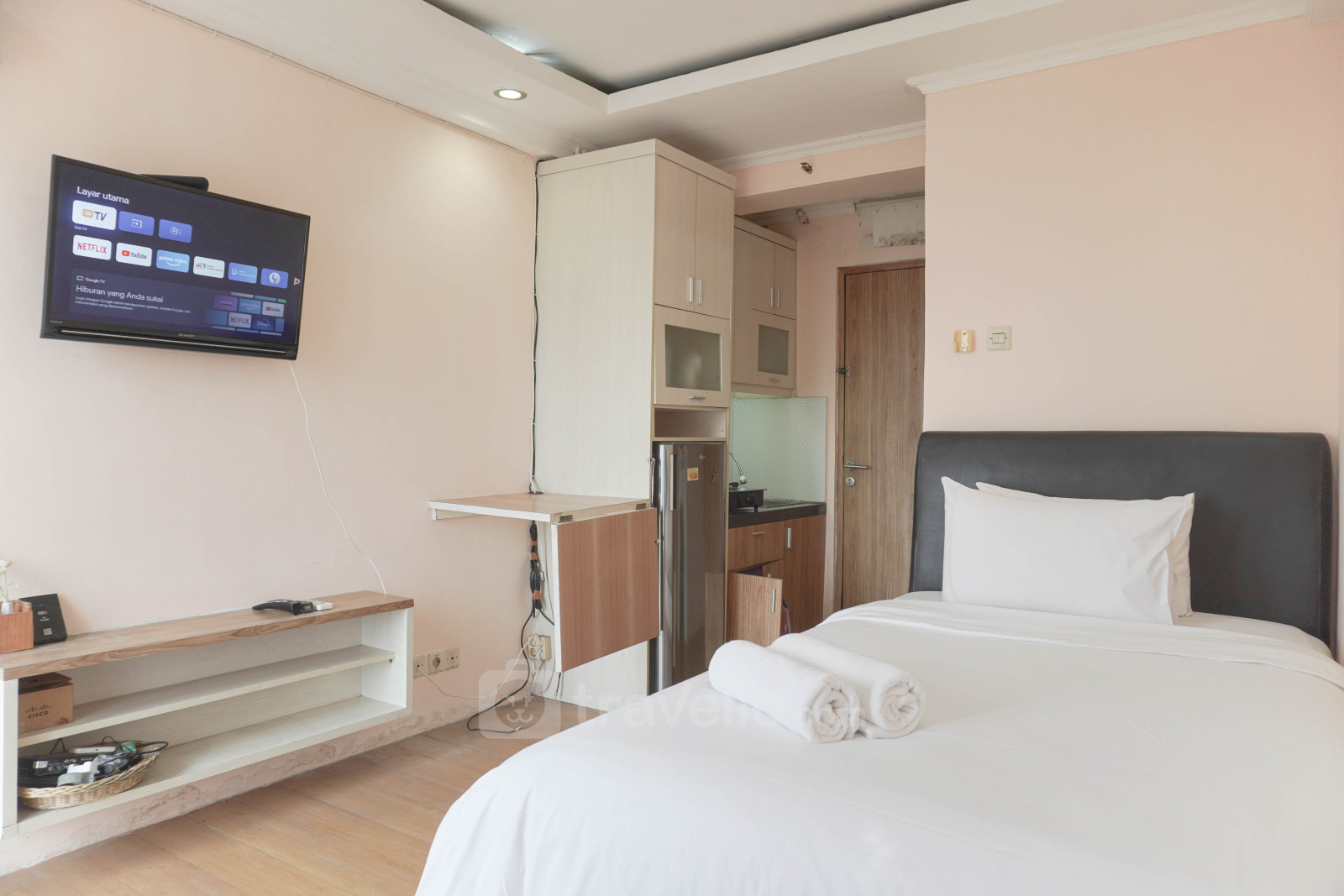 Introducing the Best Deal and Comfy Studio at Paragon Village Apartment By Travelio. This studio apartment offers a cozy living space with 1 bedroom and 1 bathroom, covering an area of 20.68 sqm. The unit is equipped with essential facilities including TV and refrigerator. Located at Jl. Raya Binong No.9, Binong, Curug, Kabupaten Tangerang, Banten, 15810, Paragon Village Apartment is strategically located with various facilities nearby. Building facilities include 24-hour security, access card, elevator, fitness center, and swimming pool, providing residents with convenience and leisure.