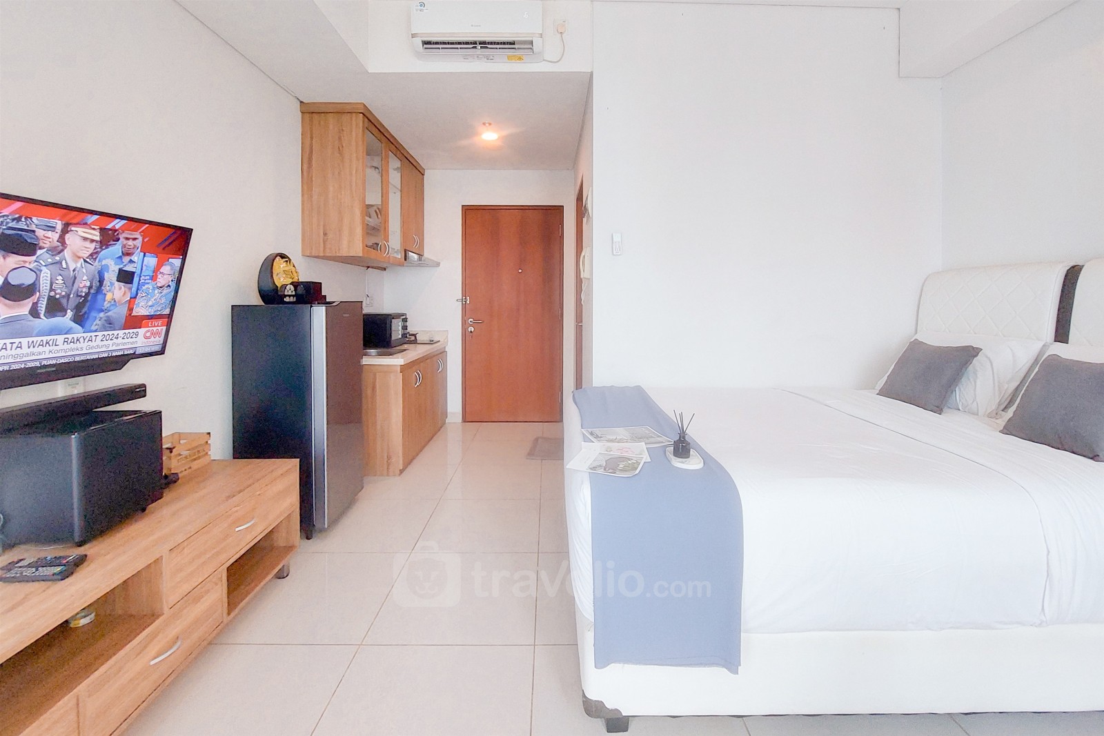 Experience comfort and elegance in this studio apartment at Roseville (Soho & Suite) by Travelio, located inthe heart of BSD City. Spanning 30.08 sqm, the unit features 1 bedroom and 1 bathroom, making it ideal for individuals or couples looking for a stylish and practical living space. The unit is equipped with modern amenities such as a TV, refrigerator, and water heater, ensuring a convenient lifestyle.