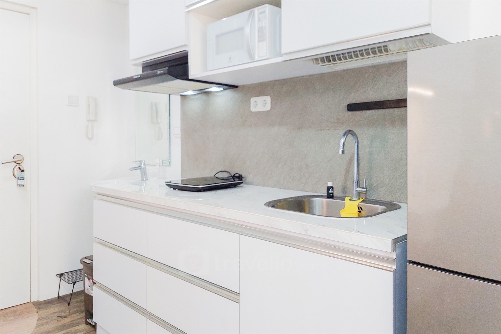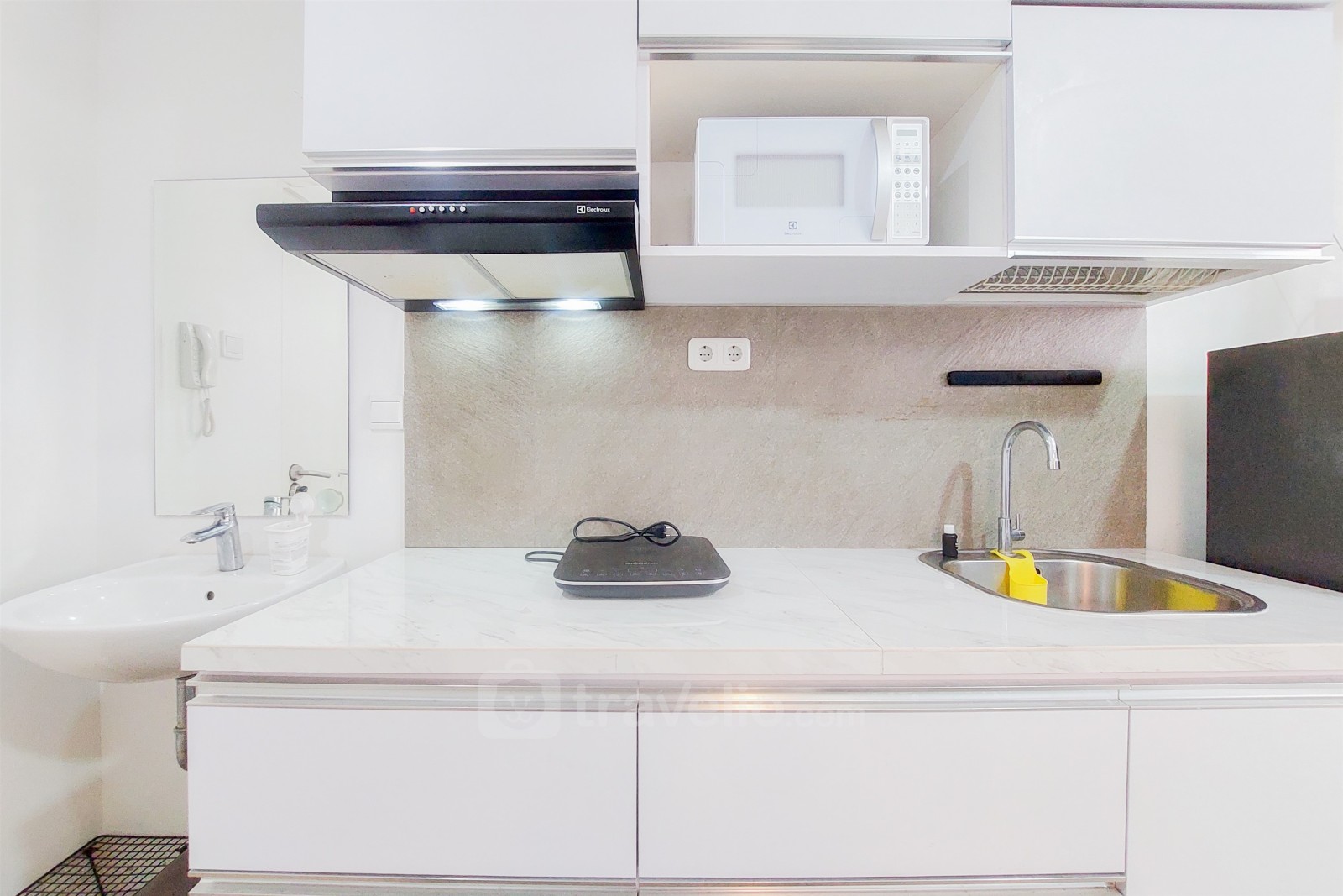 Introducing Cozy and Modern Look Studio Silk Town Alexandria Apartment By Travelio. This studio unit offers a comfortable living space with contemporary design, perfect for individuals seeking a convenient and stylish accommodation option.