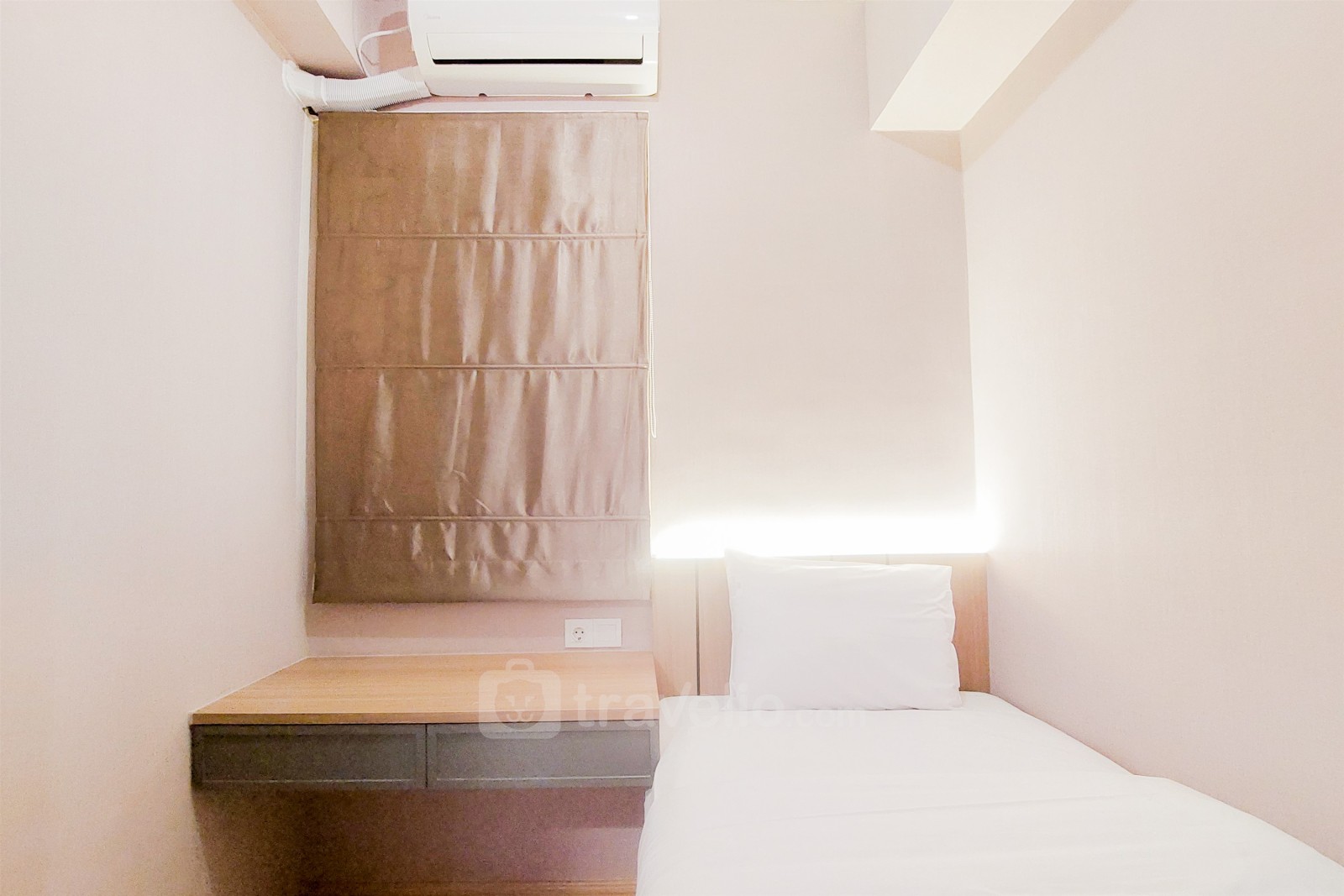 Introducing a Serene 2BR Sky House BSD Apartment next to AEON Mall By Travelio. This contemporary apartment offers a comfortable living space spanning 49.8 sqm, ideal for individuals or small families. Inside the unit, you'll find essential appliances such as a TV, refrigerator, water heater, and a well-equipped kitchen with cabinets and utensils, ensuring a hassle-free living experience. The building offers a range of facilities including 24-hour security, CCTV surveillance, elevators for convenience, a fitness center for health enthusiasts, a jogging track for outdoor activities, and a refreshing swimming pool for relaxation.