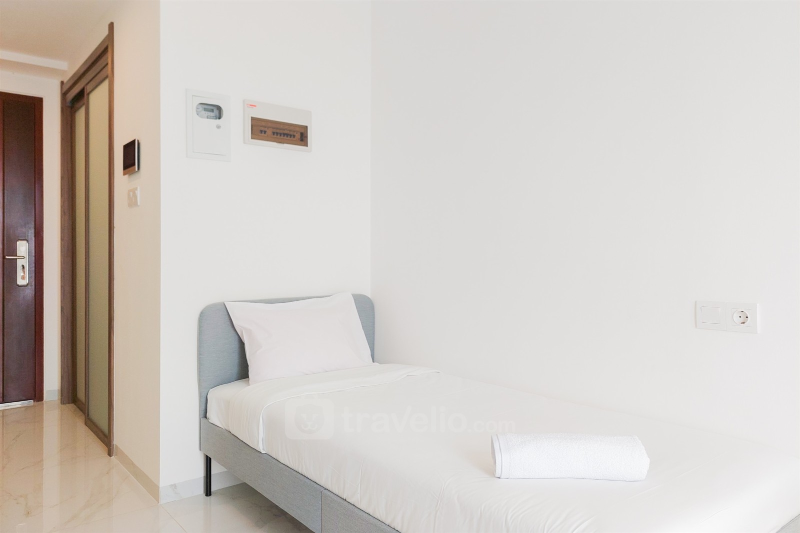 Experience the comfort of staying in a warm and homey studio unit at Sky House Alam Sutera Apartment, managed by Travelio. With a size of 18.9 sqm, this studio unit is ideal for individuals or couples looking for a cozy residence with complete facilities. Located in Alam Sutera, this apartment offers easy access to various facilities and services around the area. The unit is equipped with amenities such as a TV, refrigerator, and water heater, ensuring your comfort during your stay. The apartment building also features 24-hour security, an elevator, a fitness center, and a playground, providing extra comfort and security for its residents.