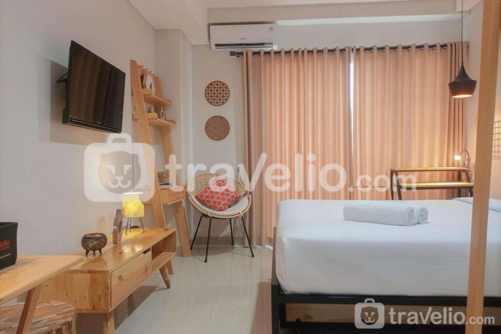 Akhir pekan ini berencana ke Jogja? Sini sini Travelio kasih rekomendasi penginapan yang gak menguras kantong tapi tetap nyaman. Warga Jogja juga boleh banget loh masukin unit ini buat list tempat staycation kamu. Bisa bareng bestie ataupun yang mau bawa keluarga kecil nih. Walaupun tipe studio, tapi kamu udah dapat kasur ukuran queen dan masih extra 1 single bed lagi. Jadi muat untuk 3-4 orang. Interiornya simpel tapi terkesan homey banget. Ditambah, dekorasi cantik dengan aksen kayu yang memang jadi ciri khas rumah-rumah di Jawa. Lokasi Apartemen Patraland Amarta ini tak jauh dari Monumen Yogya Kembali, kurang lebih berjarak 2 kilometer. Jadi kamu masih bisa explore banyak tempat wisata di Jogja.