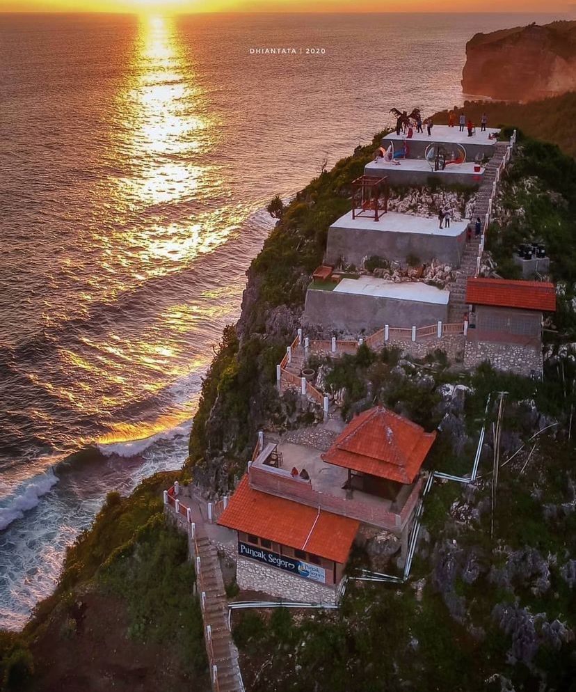 Gak perlu jauh-jauh ke Bali, ini dia wisata Nusa Penida-nya Yogyakarta. Puncak Segoro jadi salah satu tempat wisata alam yang selalu ramai dikunjungi. Kulineran di atas tebing dengan view laut lepas menjadi daya tarik tersendiri. Karena tempat ini sangat instagenic, kamu bisa manfaatkan waktu untuk berfoto sambil menunggu makanan tiba.