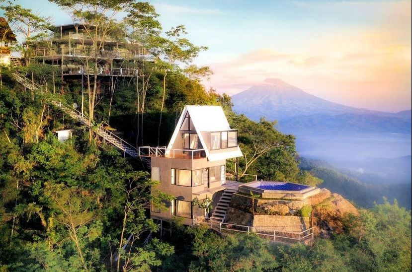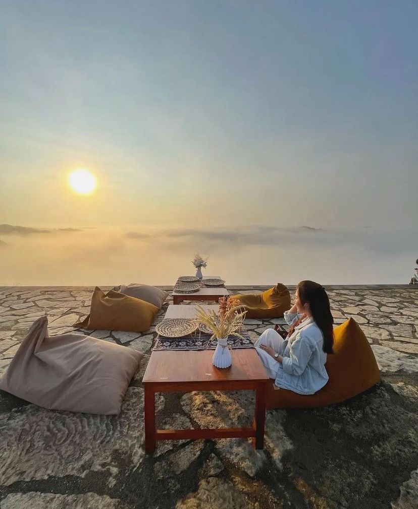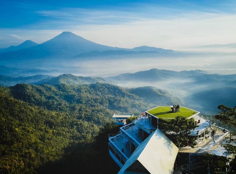 Kali ini beralih ke kawasan Kulon Progo, terdapat sebuah restoran yang bukan hanya menyajikan hidangan lezat, melainkan juga pesona alam yang mengelilinginya. Bayangkan saja, betapa indahnya memandangi perbukitan hijau dengan view 360 derajat dari atas ketinggian. Kalau beruntung, kamu juga bisa melihat pemandangan 3 gunung besar di Jawa, yaitu Merapi, Merbabu, dan Sindoro-Sumbing. Tempat satu ini bisa dinikmati kapan saja, karena buka 24 jam. Jadi kamu bisa menikmati sunrise, sunset, hingga city light dari atas perbukitan.
