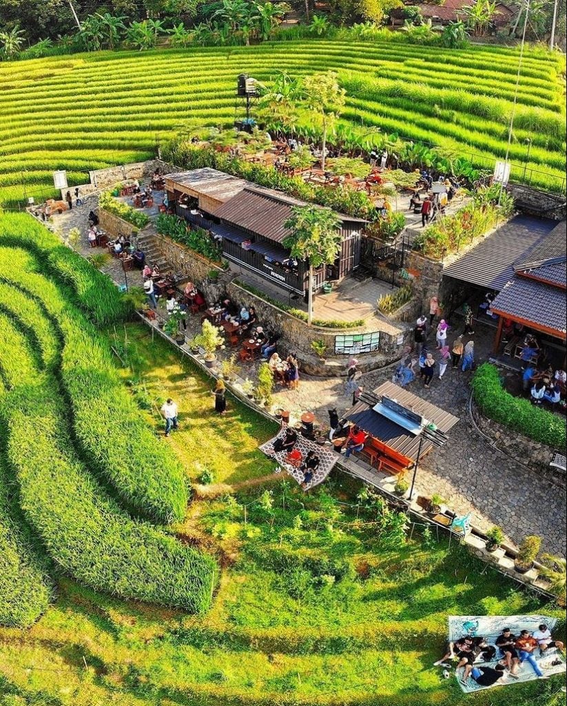 Nah, kalau kamu tipikal penikmat alam tapi mau yang effortless, destinasi kali ini bisa jadi pilihannya. Kamu bisa agendakan makan pagi di sini untuk dapat suasana yang masih sejuk dan tentunya belum ramai orang. Sensasi makan sambil bersantai di tengah sawah itu sungguh menenangkan, sekaligus menyenangkan. Kamu juga bisa loh sempatkan berkeliling sawah sebentar dan mengambil beberapa foto sebelum pergi dari tempat ini.