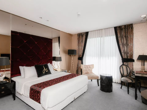 Pengen merasakan menginap di kamar yang bergaya vintage tapi tetap dengan sentuhan modern? Noor Hotel Bandung adalah pilihan yang tepat. Nuansa kamarnya yang luxury, bikin tambah betah menginap di sini. Eits, gak sampai situ aja! Di sekitar area hotelnya juga terdapat banyak pilihan kuliner hits nan viral, salah satunya ada Drunk Baker. Mau belanja ke factory outlet pun cuma perlu jalan kaki kurang lebih 5 menit saja.