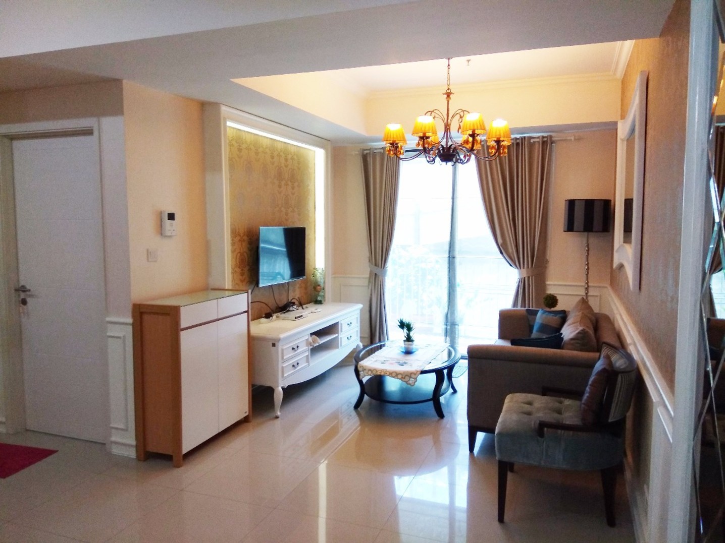 Unit apartemen ini terletak di gedung Casa Grande Residence, tower Mirage. Unit apartemen ini menawarkan beragam kenyamanan untuk dinikmati oleh Anda. Unit ini juga telah difasilitasi dengan berbagai perabotan yang lengkap, sehingga Anda tidak perlu lagi repot untuk membeli perabotan yang diperlukan, namun tidak disediakan di apartemen. Unit ini didesain dengan modern minimalis, serta elegan. Dinding apartemennya berwarna putih bersih, lengkap dengan perabotan modern yang tertata sangat rapi, sehingga ketika Anda masuk ke hunian ini, Anda akan merasa sangat lega dan nyaman. Perabotan yang tersedia juga dominan berwarna putih, kaca, dan elegan, membuat setiap unit di apartemen ini seakan mengkomplementari satu sama lain.