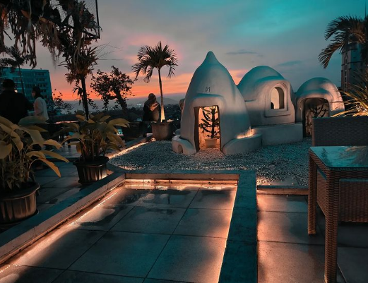 Kalau sebelumnya merasakan sensasi makan di dalam air, kali ini berpindah ke dalam Gua. Selain mengusung konsep makan di dalam gua, cafe ini juga menyediakan konsep lain di lantai paling atas (rooftop) yang mana memberikan kamu pengalaman makan sambil menikmati pemandangan 360° Kota Bandung. Konsep keseluruhan cafe ini secara garis besar dinamakan dengan The Elysian Meraki, di mana kamu akan menemuka sensasi seperti sedang berada di pantai Eropa. Dijamin banyak spot foto instagramable yang bisa kamu eksplorasi.
