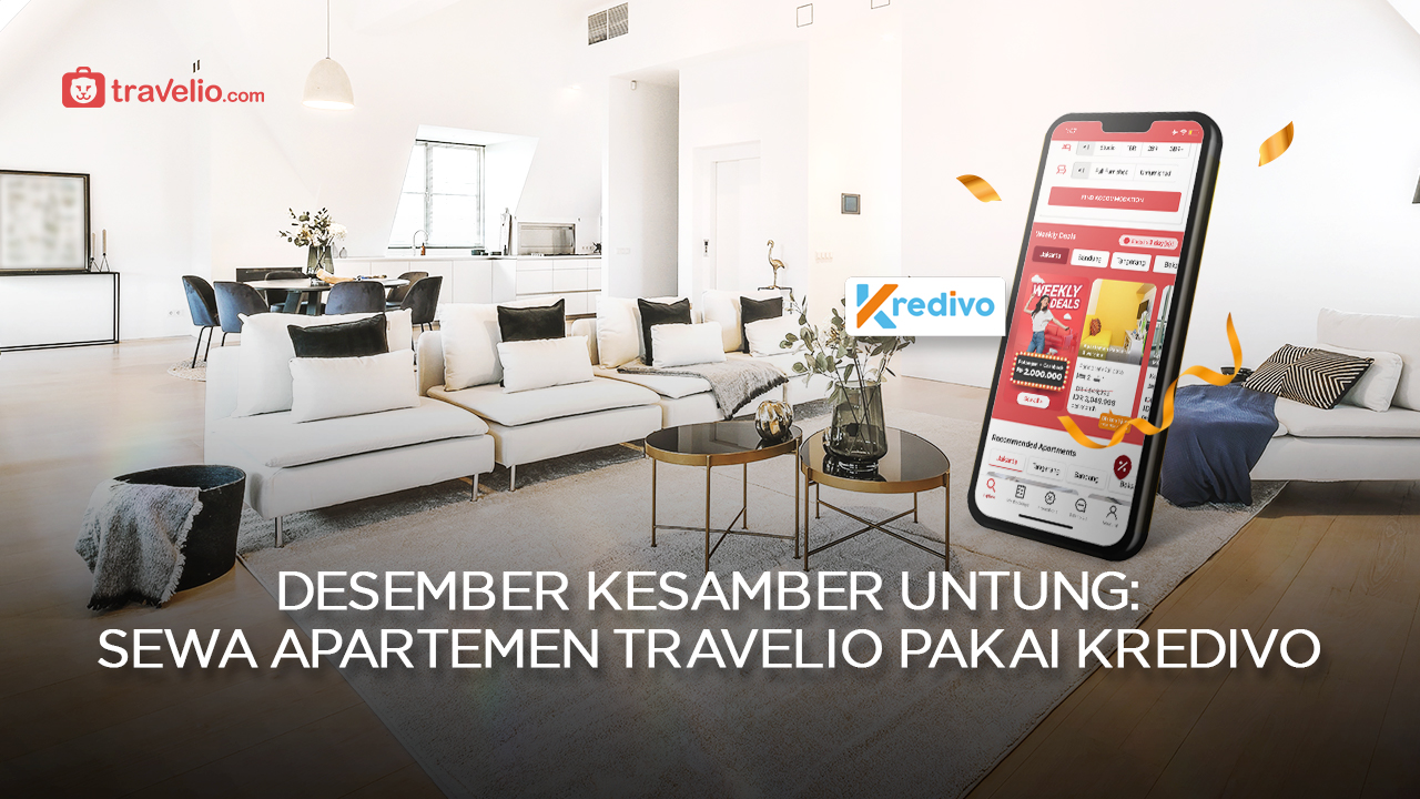 Promo Desember Travelio bersama Kredivo kali ini bisa jadi solusi tepat buat menyambut akhir tahun. Kamu bisa memanfaatkannya untuk staycation di apartemen idamanmu, atau bisa juga buat yang lagi membutuhkan hunian untuk jangka waktu lama. Karena kamu bisa bebas bunga cicilan dalam jangka waktu pembayaran 30 hari. Sedangkan untuk waktu cicilan 3 sampai 12 bulan, dikenakan bunga sebesar 2,6% (dapat berubah sewaktu-waktu).