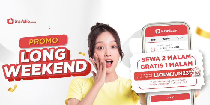 Kira-kira kamu udah tau belum mau liburan ke mana? Atau baru berencana buat stay di rumah aja? Yah, sayang banget. Gimana kalau staycation? Tenang, nggak perlu khawatir harganya jadi mahal, karena Travelio punya solusinya buat kamu. Promo spesial khusus long weekend ini, sewa 2 malam bisa GRATIS 1 malam, lho!