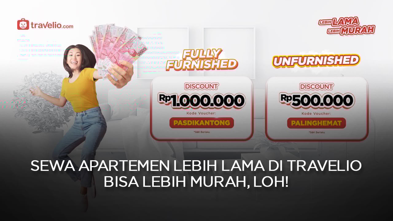 Gimana, tertarik untuk stay lebih lama di Travelio? Yuk download aplikasinya sekarang juga, untuk temukan unit apartemen terbaikmu, dan jangan lupa gunakan promo eksklusif “Lebih Lama Lebih Murah” dengan diskon up to Rp1.000.000. Lebih hemat, bukan?