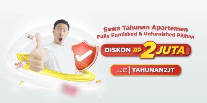 Promo berlaku untuk sewa apartemen fully furnished maupun unfurnished, dengan minimal sewa 1 tahun. Gunakan kode voucher TAHUNAN2JT buat dapatin potongan hingga Rp2 juta. Promo bisa digunakan untuk metode pembayaran full payment, maupun installment (cicilan).