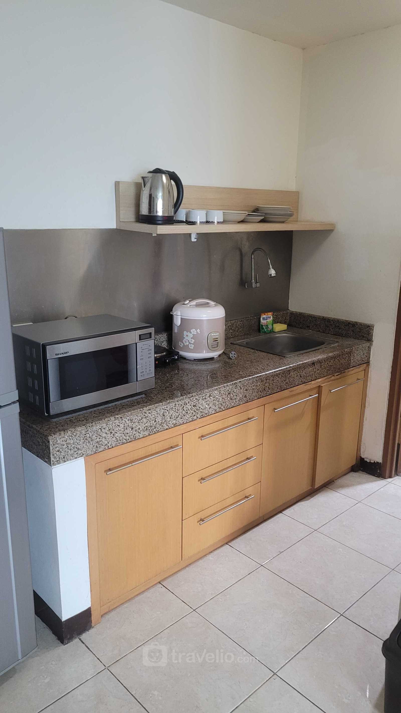 This 2BR apartment unit is perfect for leisure or business trips. In addition, this unit has an area of 48 square meters. It is equipped with a King Bed (180x200) and Super Single Bed (120x200) covered with star hotel quality linen. This unit has a touch of Modern decoration to make you feel relaxed and comfortable. Another thing to know this unit has facilities and equipment that will make your stay more interesting, such as a water heater and a microwave. This apartment unit is available for rent on a daily, monthly and yearly basis.