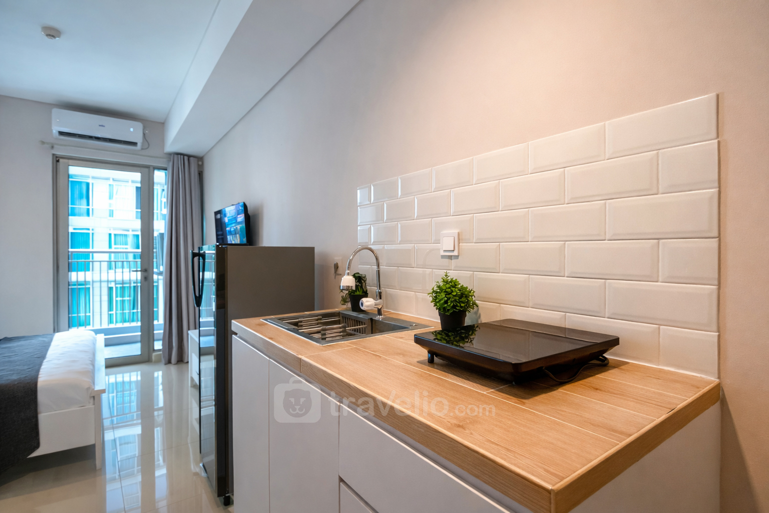 Enjoy a comfortable stay in this 23.13 sqm studio unit, thoughtfully arranged with a queen-size bed that accommodates up to 2 guests. Ideal for business travelers or couples seeking a practical residence in the Rawalumbu, Bekasi area with easy access to transportation and essential facilities.