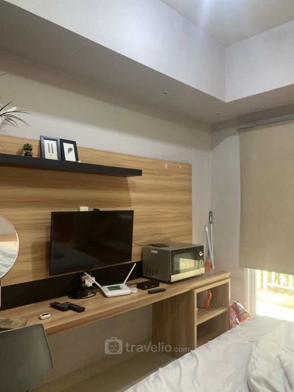 1 bed, queen (160x200) covered with star-hotel quality linen, air conditioner (AC), television, free Wi-Fi access in room, toiletries, and kitchenware are provided. Additional facilities such as 24-hours security, 24-hours frontdesk, access card, CCTV in public area, car park, elevator, fitness center, and swimming pool will give you ultimate comfort during your stay. Furnished Studio Apartment Mustika Golf Residence By Travelio is available to rent for daily, monthly, and yearly.