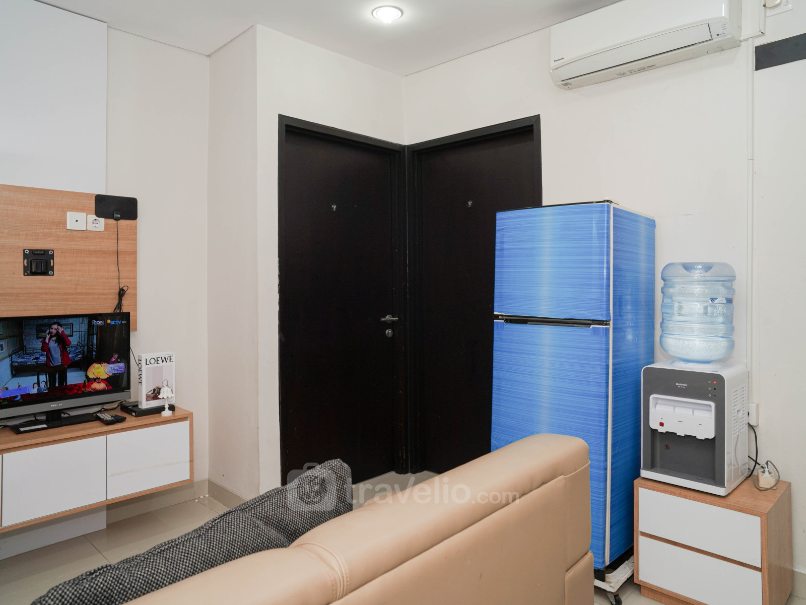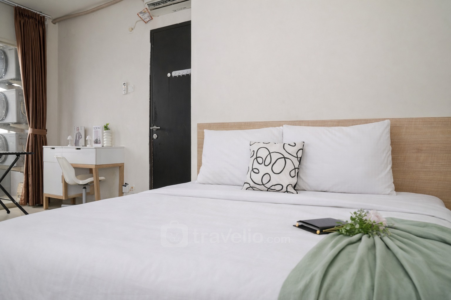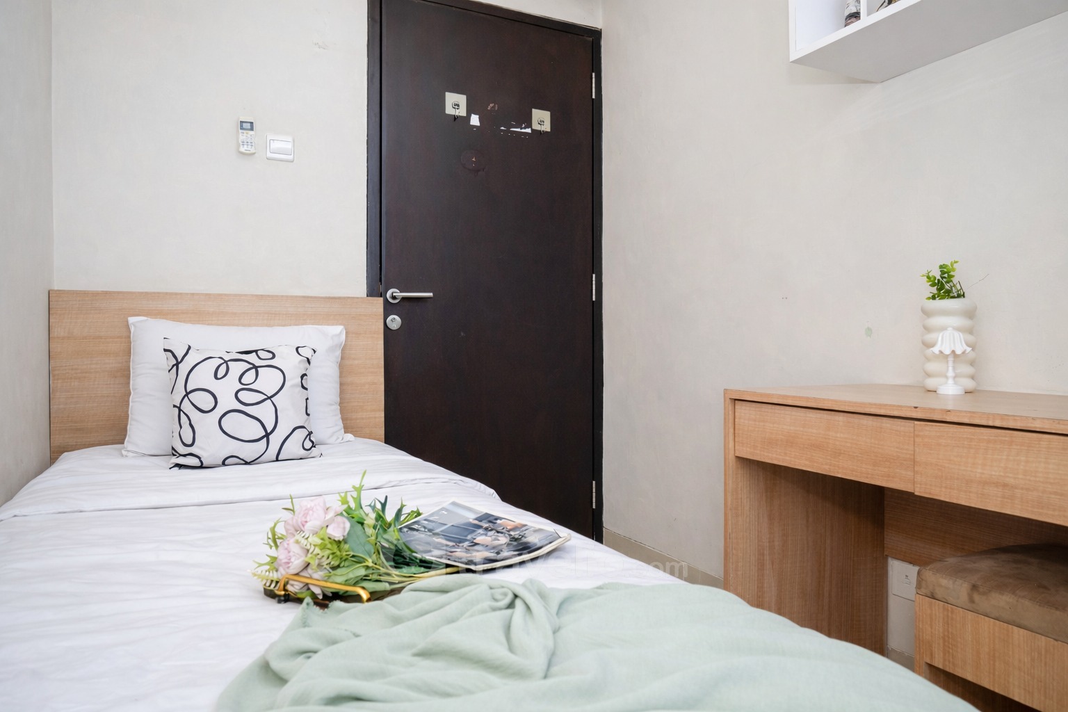 Located in Margonda area, this accommodation offers a fascinating City View. Atlanta Residences is 680 meters away from Depok Town Square. 2 beds, Queen (160x200), Single (100x200) covered with star-hotel quality linen, Air Conditioner (AC), television, free Wi-Fi access in room, toiletries, and kitchenware are provided. Additional facilities such as 24-Hour Security, Access Card, CCTV In Public Area, Cafe, Elevator, Supermarket, Swimming Pool will give you ultimate comfort during your stay. Homey and Modern 2BR Apartment at Atlanta Residence By Travelio is available to rent for daily, monthly, and yearly. A full AC and free wifi apartment unit. From the 20th floor, you can enjoy a stunning City View. The bathroom is equipped with a water heater. There is a balcony with a view. This apartment unit has a Modern style.