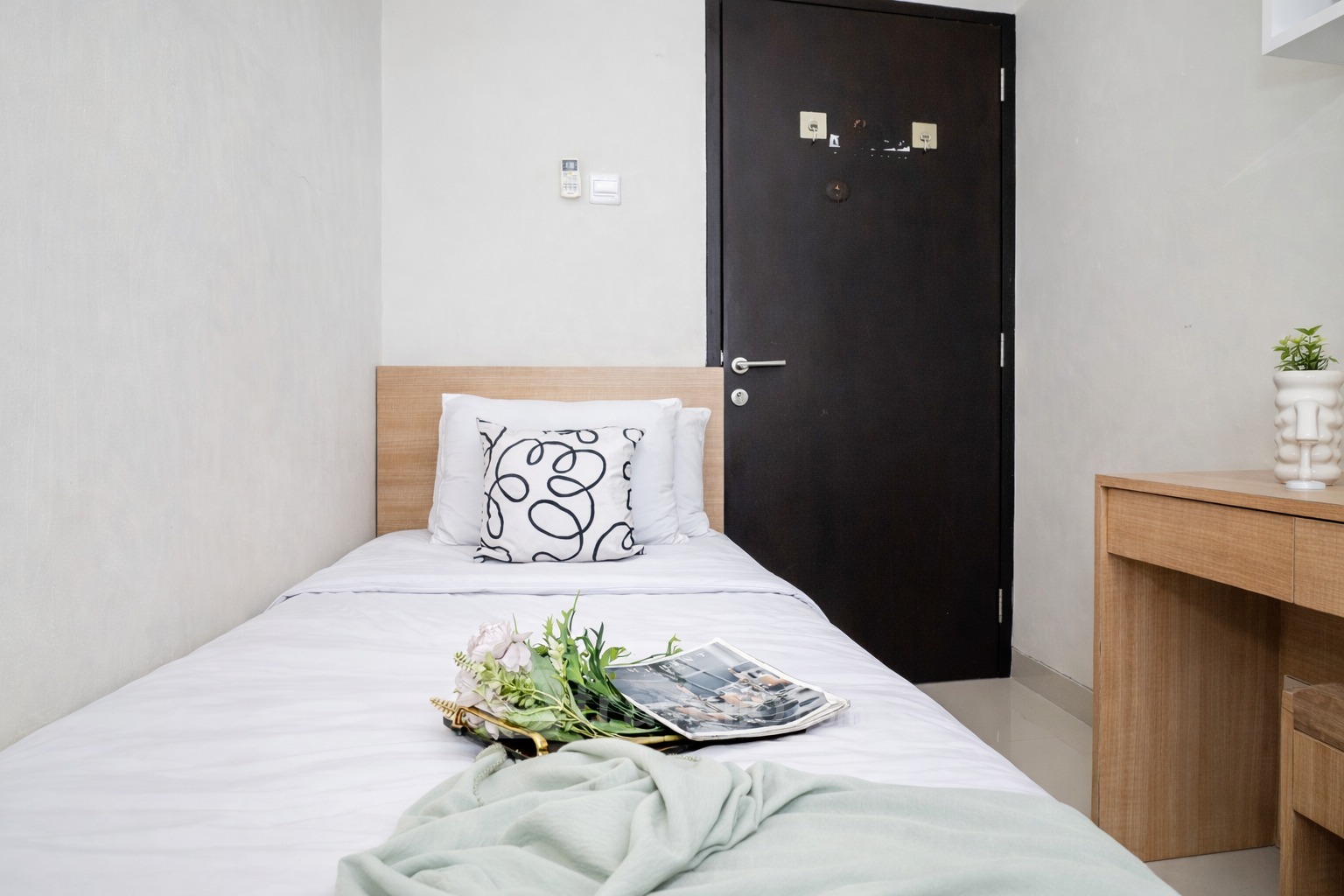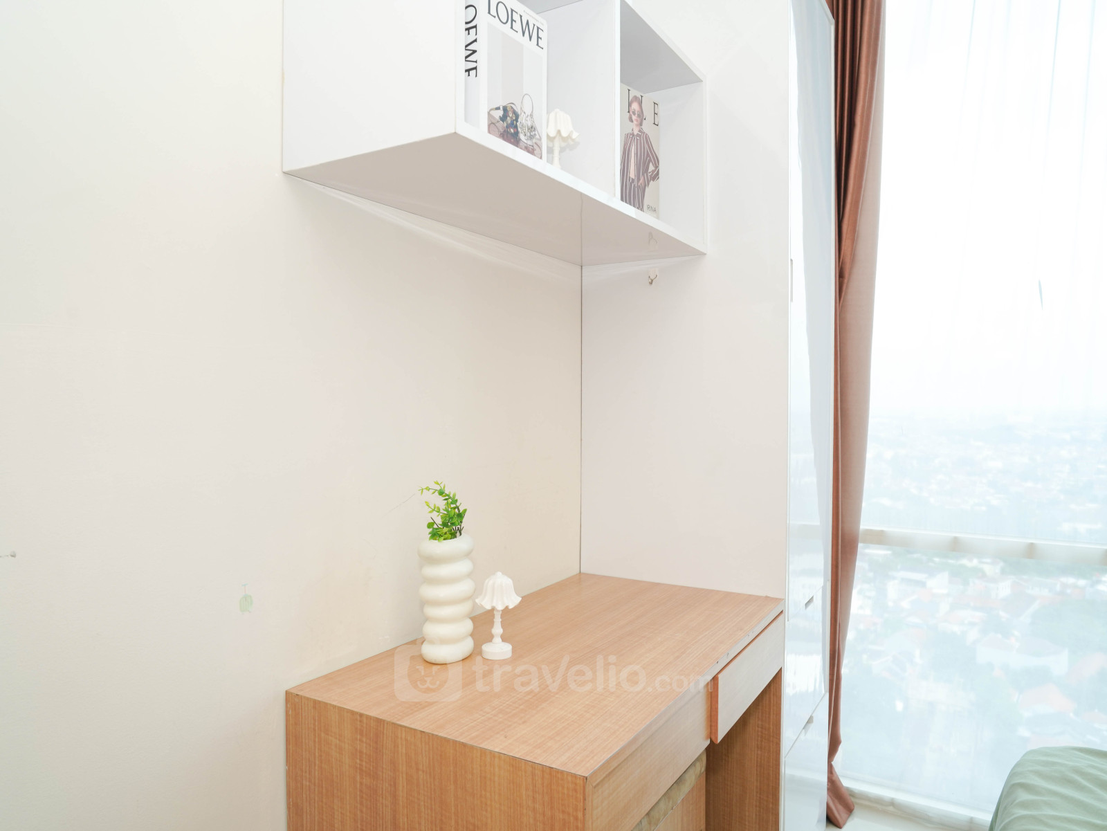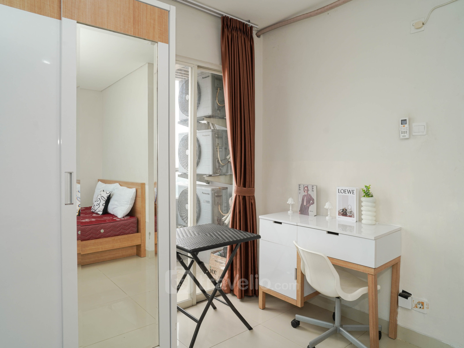 Located in Margonda area, this accommodation offers a fascinating City View. Atlanta Residences is 680 meters away from Depok Town Square. 2 beds, Queen (160x200), Single (100x200) covered with star-hotel quality linen, Air Conditioner (AC), television, free Wi-Fi access in room, toiletries, and kitchenware are provided. Additional facilities such as 24-Hour Security, Access Card, CCTV In Public Area, Cafe, Elevator, Supermarket, Swimming Pool will give you ultimate comfort during your stay. Homey and Modern 2BR Apartment at Atlanta Residence By Travelio is available to rent for daily, monthly, and yearly. A full AC and free wifi apartment unit. From the 20th floor, you can enjoy a stunning City View. The bathroom is equipped with a water heater. There is a balcony with a view. This apartment unit has a Modern style.