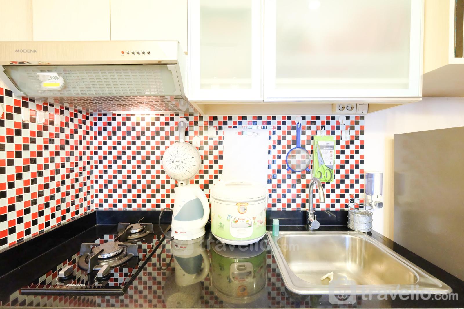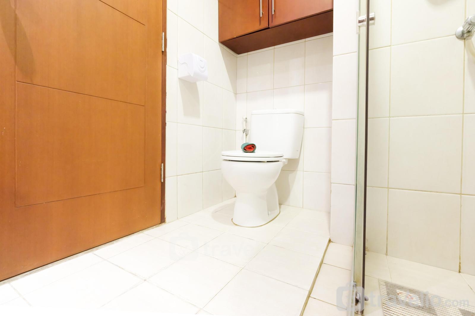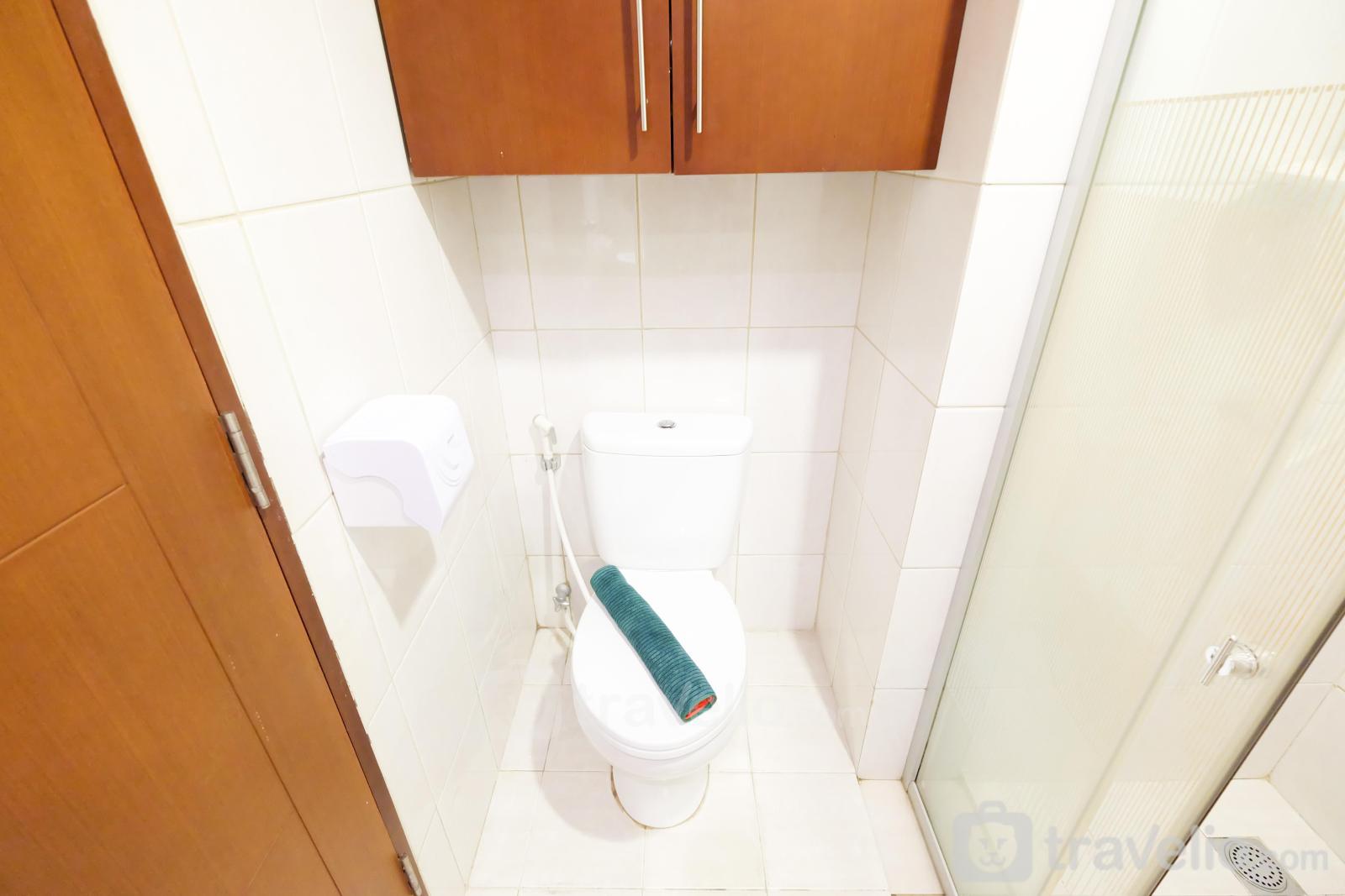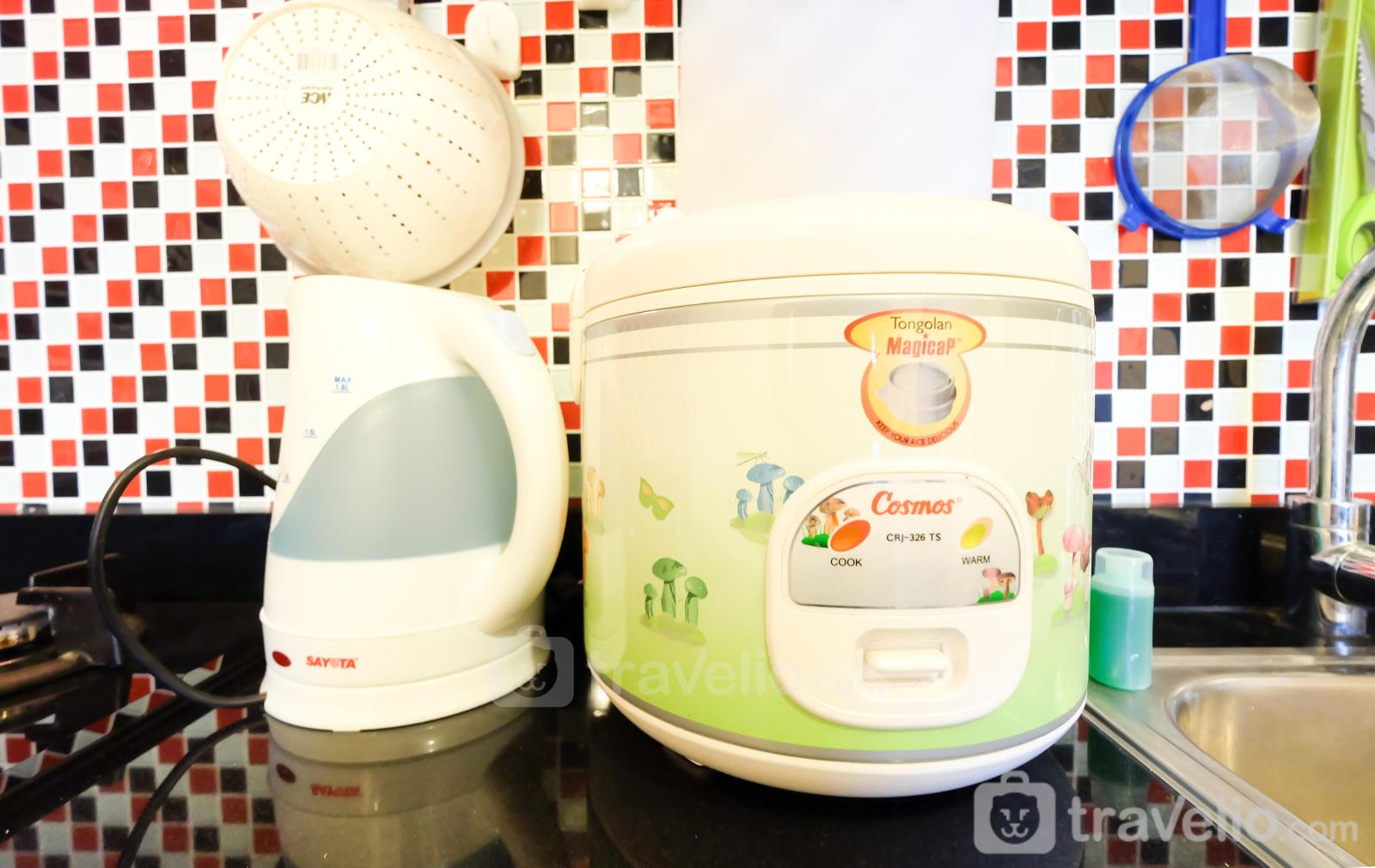 This apartment is equipped with a minimalist kitchen and utensils such as a gas stove, refrigerator, rice cooker, electric kettle, and other cooking utensils. To keep your body fresh, this apartment provides a bathroom equipped with shower, closet, jet shower, bathroom sink, and other toiletries.