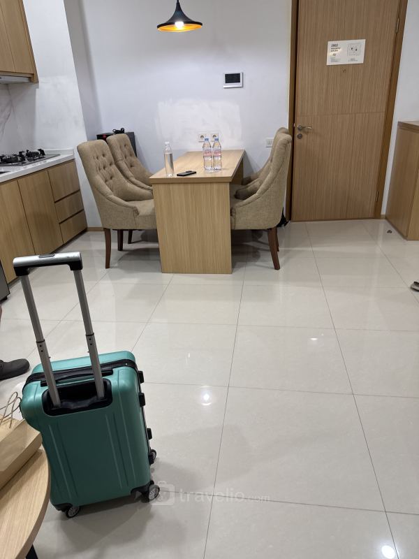 Samara Suites Apartment is located 0.95 km from Museum Bank Indonesia or 1.77 km to Universitas Trilogi. Samara Suites Apartment facilitated with 24-Hour Security, CCTV In Public Area, Fitness Center, Sky Garden, Swimming Pool. This apartment unit also provides 2 beds, King Bed (180x200) and Single Bed (100x200) covered with star-hotel quality linen, air conditioner (AC), television, toiletries, and kitchenware to support your daily needs. Nice and Comfortable 2BR at Samara Suites Apartment By Travelio is available to rent for monthly and yearly. This apartment unit has Modern style The living room provides a sofa bed. Water heater is provided in the bathroom. From the 28 floor, you can enjoy a stunning City View.