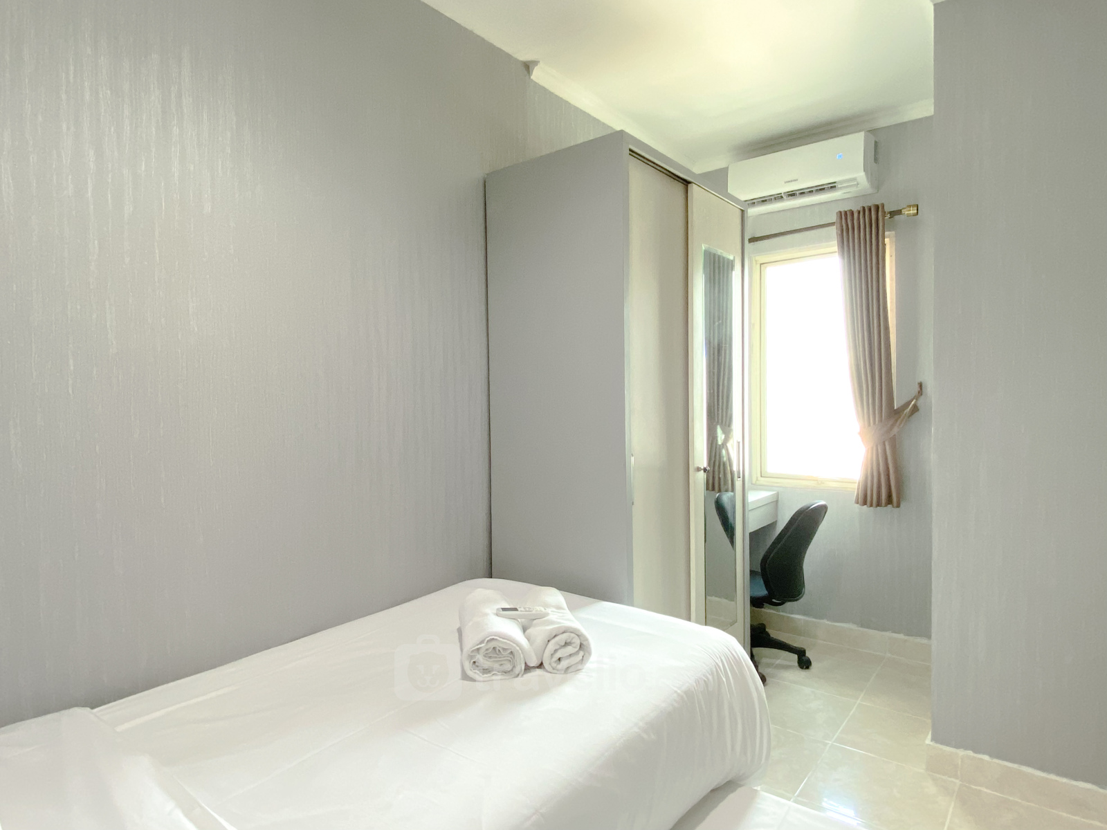 Introducing Comfortable and Cozy 2BR City Home Gading Riverview (MOI) Apartment By Travelio, situated in the heart of Kelapa Gading, Jakarta Utara. This spacious apartment features 2 bedrooms, 1 bathroom, and spans 45 sqm, offering ample space for families or small groups.