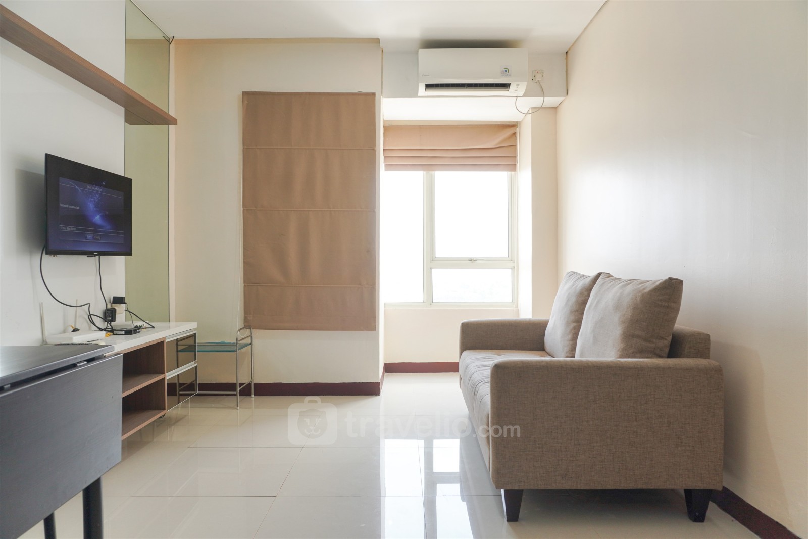 This Comfy 2BR Apartment at Nifarro Park Pasar Minggu By Travelio apartment comes with contemporer design and consist of kitchen, living room, bathroom, and 2 bedrooms. The bathroom is equipped with water heater. From the 17 floor, you can enjoy a stunning city view. Each room of this apartment unit is equipped with air conditioner (AC).