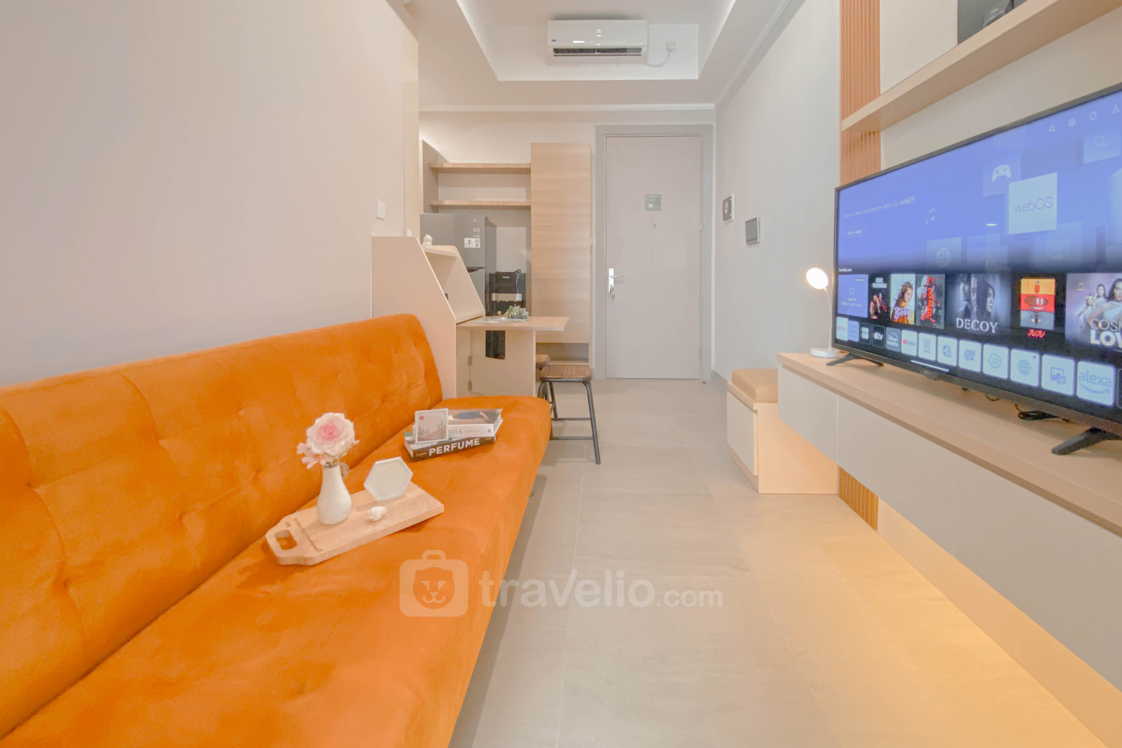 This compact and cozy 1-bedroom apartment at Menara Jakarta Kemayoran offers a comfortable living space of 40 sqm. It is equipped with essential amenities such as a TV, refrigerator, water heater, and washing machine, making it suitable for small families or individuals seeking a practical and convenient home.