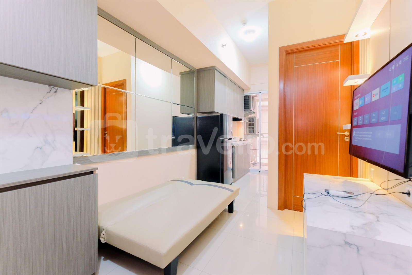 Experience the comfort and convenience of living at the Cozy and Minimalist 1BR Apartment at Vittoria Residence by Travelio, with a strategic location and complete facilities ensuring an unparalleled living experience in Cengkareng, West Jakarta.