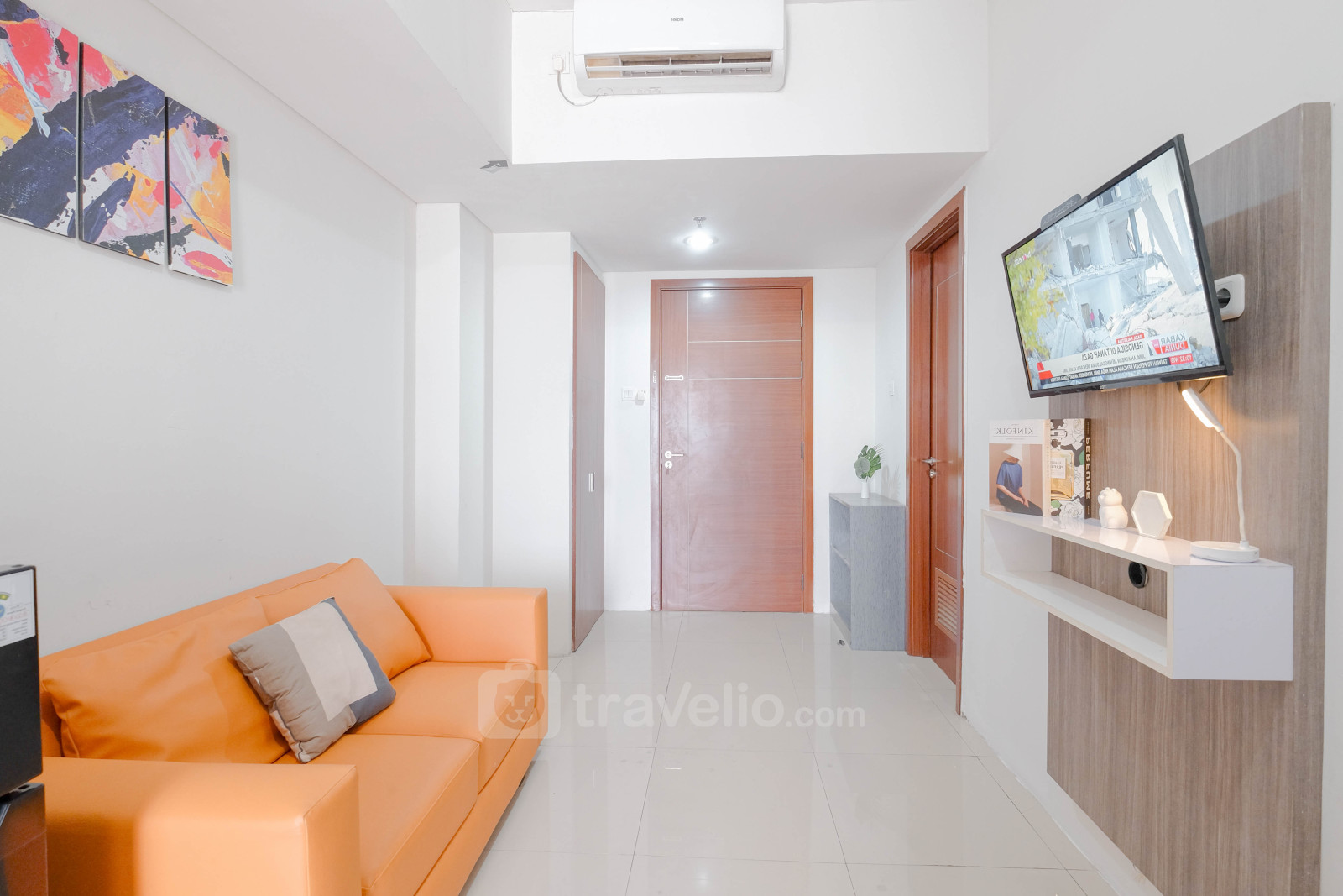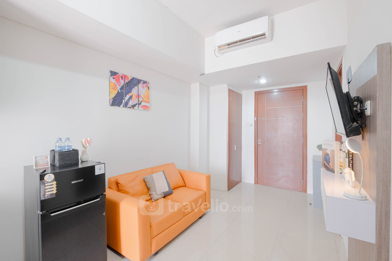 This comfortable 2-bedroom apartment is located at Vittoria Residence, a strategic area in Cengkareng, West Jakarta. With a size of 43.05 sqm, this unit is perfect for small families or couples in need of extra space. It comes equipped with amenities such as a TV, refrigerator, and water heater, ensuring comfort and convenience. The building offers various facilities, including 24-hour security, ATM, access card, CCTV in public areas, a café, elevator, fitness center, jogging track, playground, and swimming pool, ensuring the comfort and safety of residents.