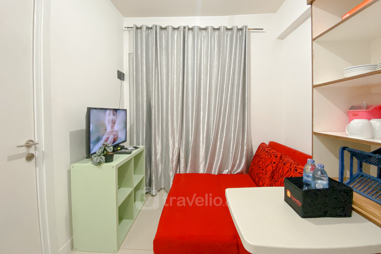 This comfortable and conveniently located 2-bedroom apartment at Green Pramuka City by Travelio provides easy access to various amenities and transportation options, making it an ideal residence for those looking for a vibrant living environment in Central Jakarta.