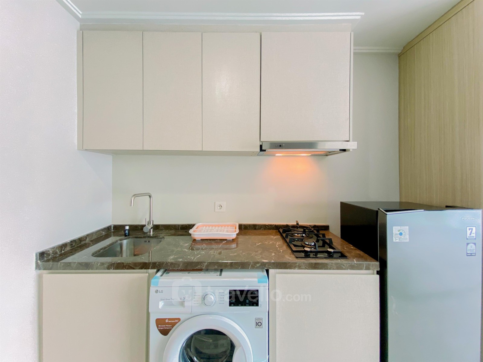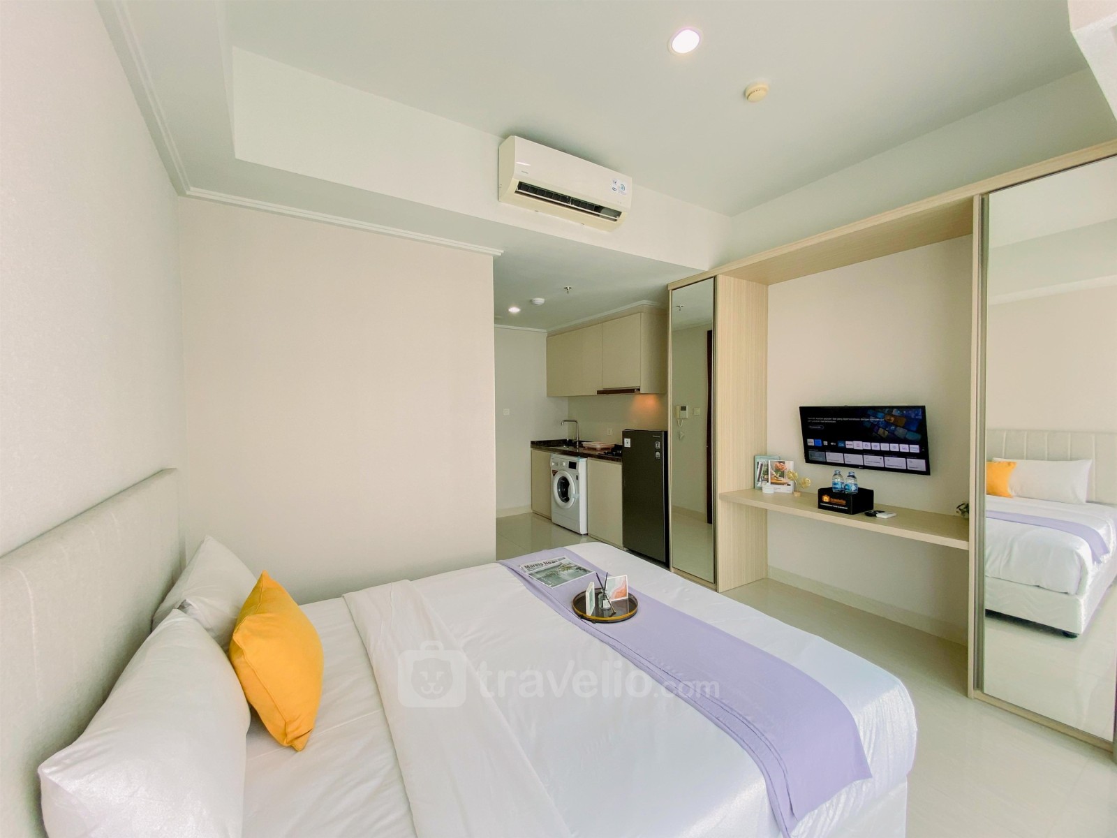 Enjoy a homey and comfortable stay at Green Sedayu apartment managed by Travelio. This cozy studio apartment spans 28 sqm and offers a tranquil living environment equipped with modern amenities, making it an ideal choice for individuals or couples. Located in the vibrant Cengkareng area, the apartment's strategic position provides easy access to various city attractions and essential services. The unit is furnished with essential facilities such as a TV, refrigerator, water heater, and washing machine, ensuring a hassle-free living experience. Green Sedayu boasts a wide array of premium building amenities including 24-hour security for your safety, an access card system, CCTV in public areas, and convenience-enhancing features like a cafe, elevator, fitness center, mall access, playground, and swimming pool.