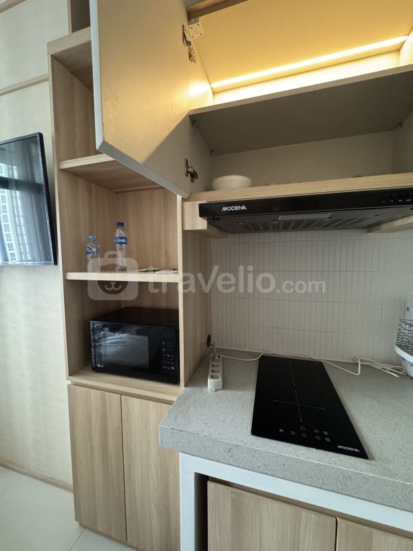 The size 26.5 square meters living space is a Studio which makes it perfect to accommodate 2 person. Other than that, this unit is also equipped with supporting in-room facilities like water heater which certainly will make your staying experience more comfortable. Each room of the apartment unit has Modern interior design.