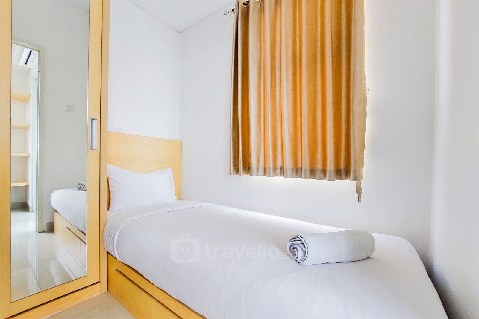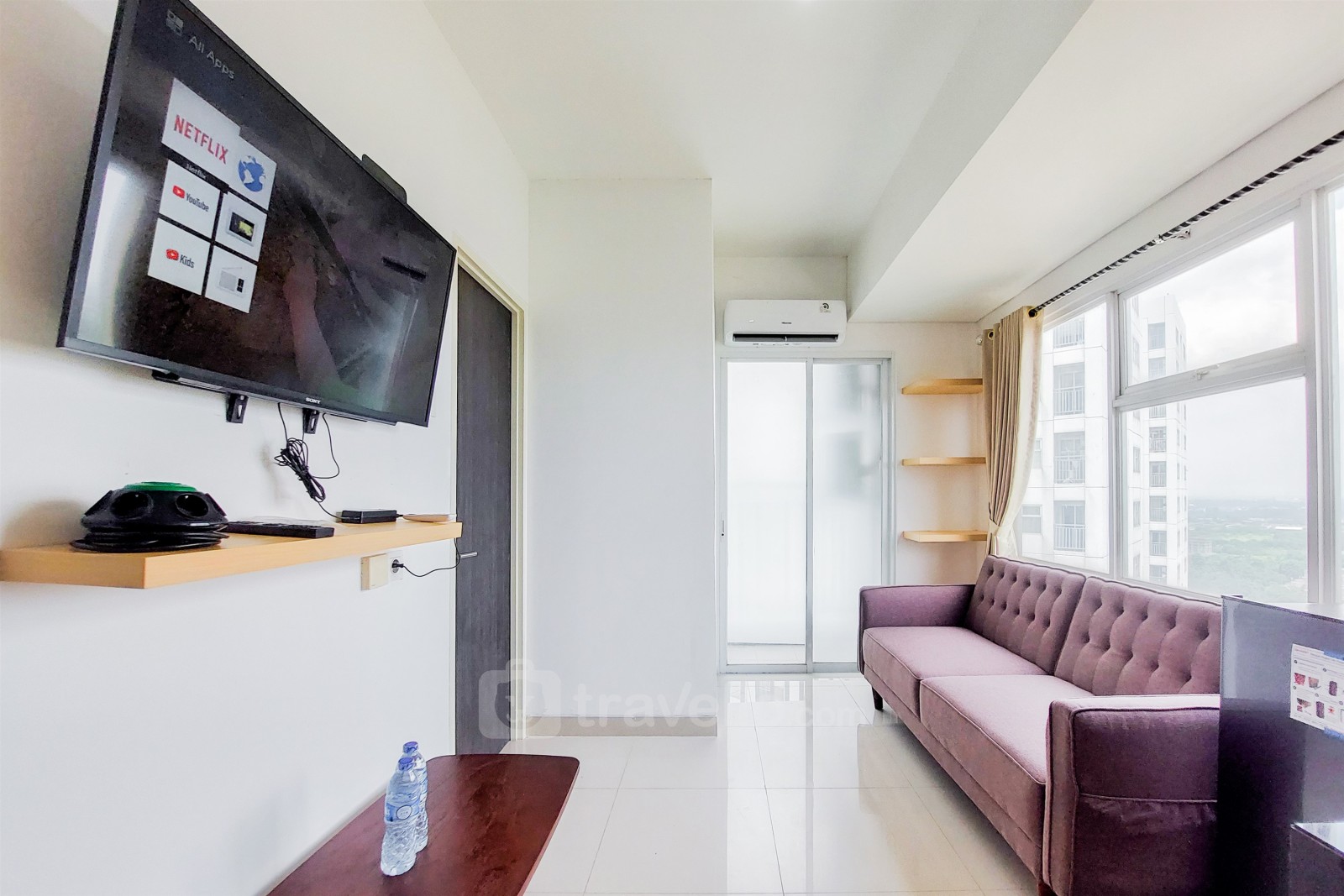 Introducing Nice and Cozy Living 2BR Serpong Garden Apartment By Travelio. This delightful unit offers a comfortable living space spanning 36 sqm, comprising two bedrooms and one bathroom. Strategic situated at Jl. Raya Cisauk Lapan Jl. Kp. Cibelut, Cibogo, Cisauk, Kab Tangerang, Banten, 15341, this apartment provides easy access to various amenities and attractions.