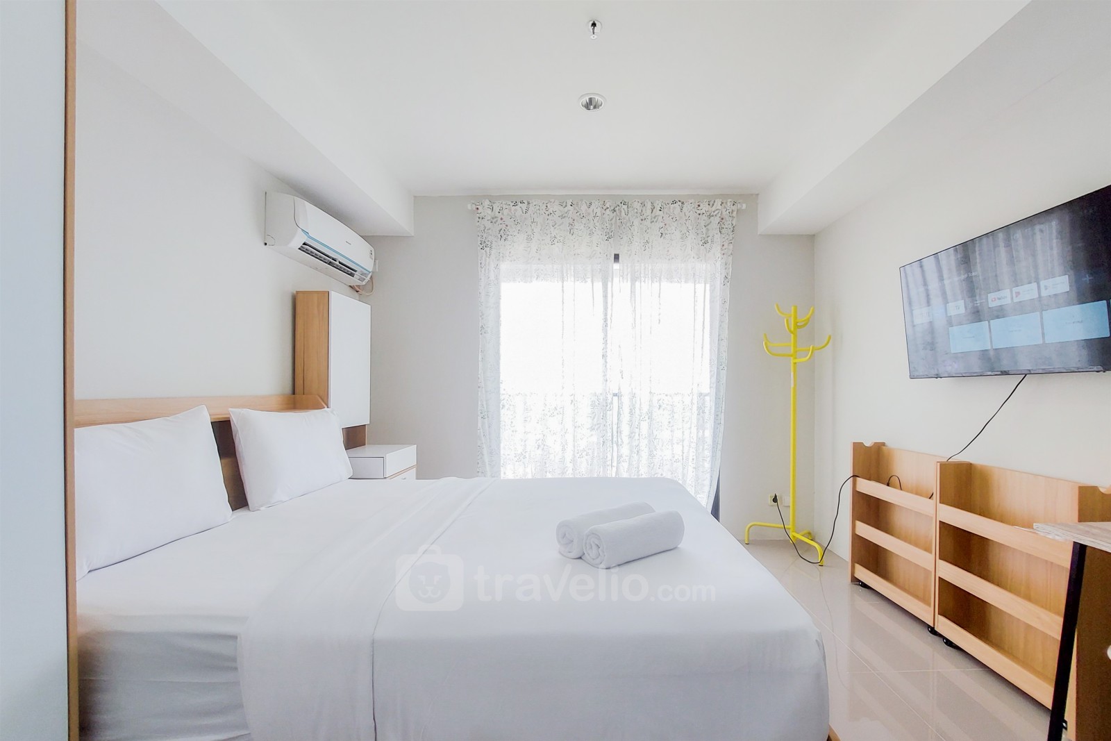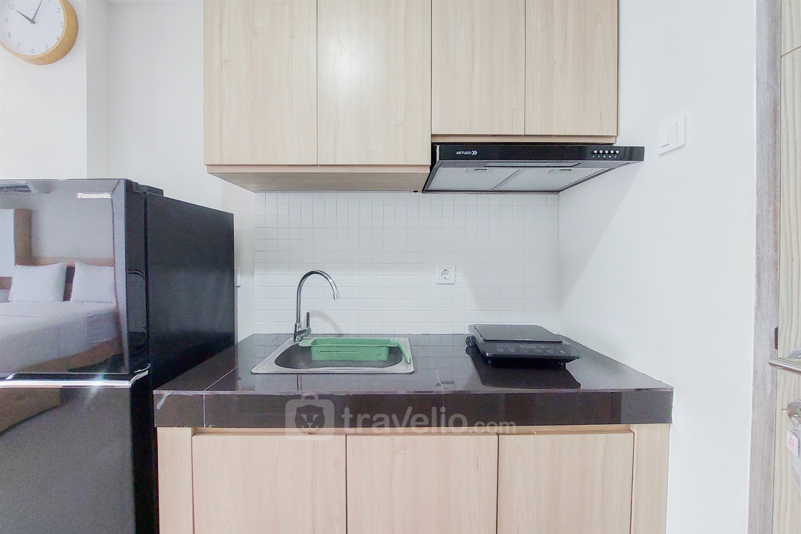 Introducing the Restful Studio at Anwa Residence Bintaro Apartment, exclusively offered by Travelio. This studio apartment provides a tranquil living space in the bustling area of Ciputat, Tangerang Selatan. Featuring a cozy studio bedroom and one bathroom within a spacious 29.1 square meters, this apartment is ideal for individuals or couples seeking a peaceful retreat. Equipped with essential amenities such as a TV, refrigerator, and water heater, residents can enjoy a comfortable and convenient lifestyle. The building features 24-hour security, an ATM on-site, CCTV in public areas, car parking, an elevator, jogging track, playground, sky garden, and swimming pool for residents' convenience.