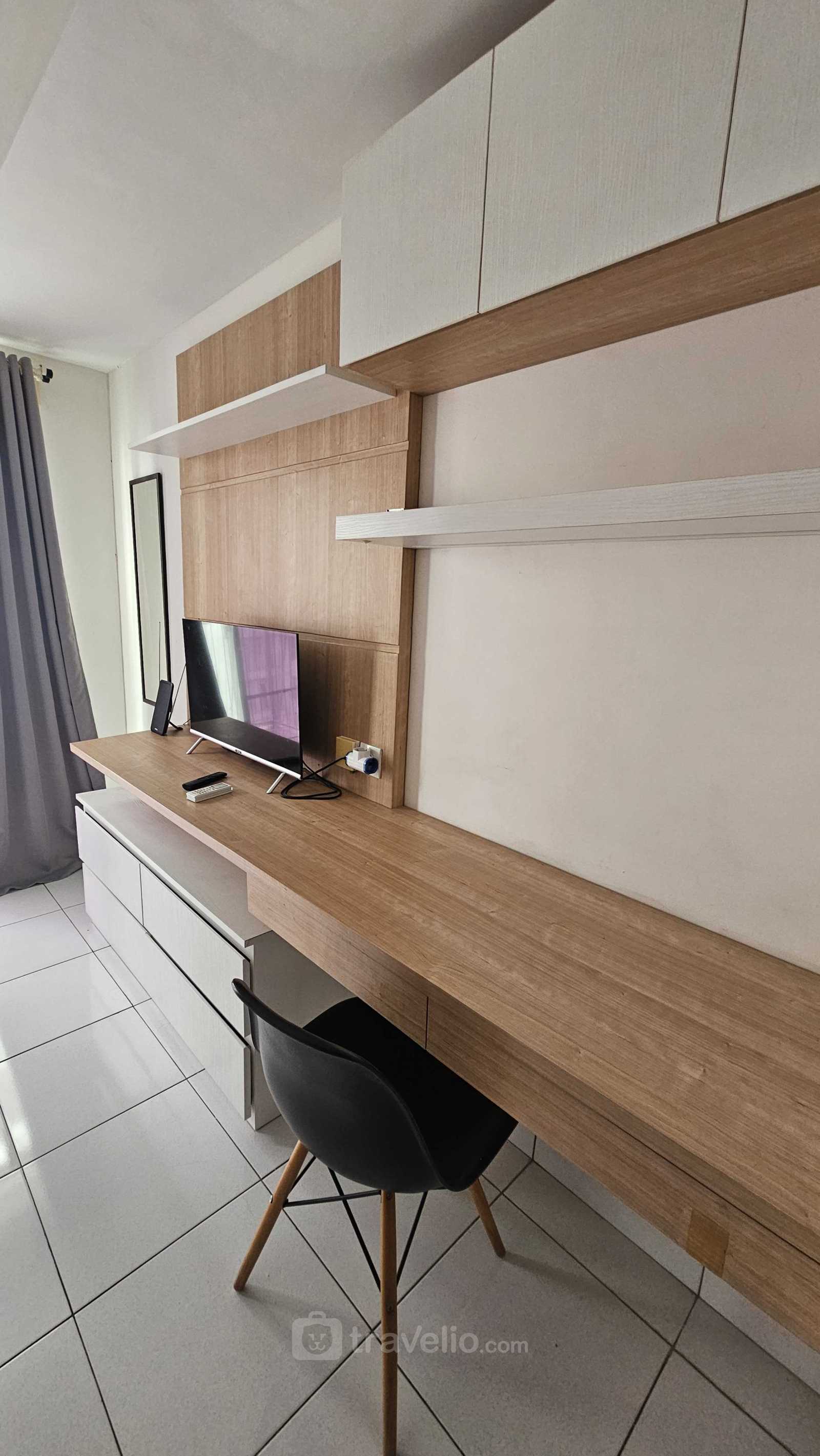 This 27.59 apartment unit also equipped with 01 bed, Trundle Bed (Super Single Bed & Super Single Underbed) covered with star-hotel quality linen, air conditioner (AC), television, free Wi-Fi access in room, toiletries, and kitchenware. Simply Minimalist Studio at Casa De Parco Apartment By Travelio is available to rent for daily, monthly, and yearly. Water heater is provided in the bathroom. This apartment unit has Minimalist style. This accommodation offers a fascinating City View