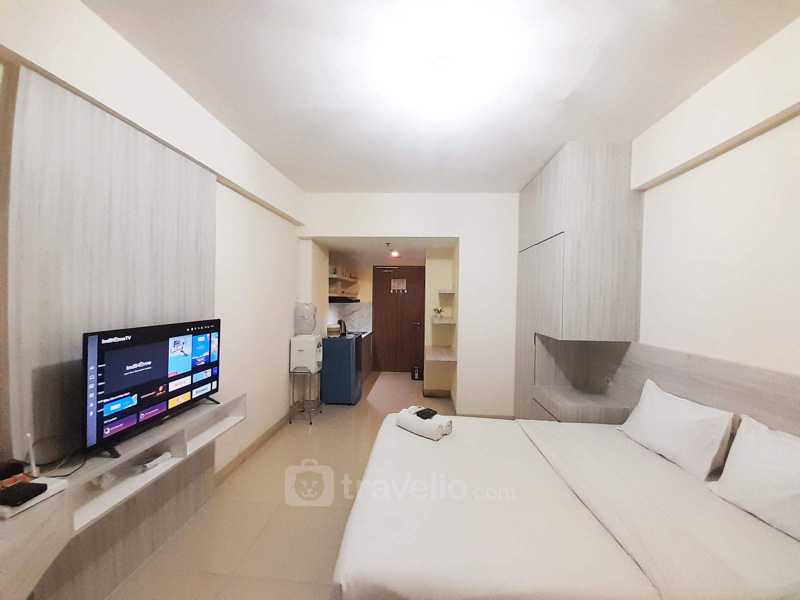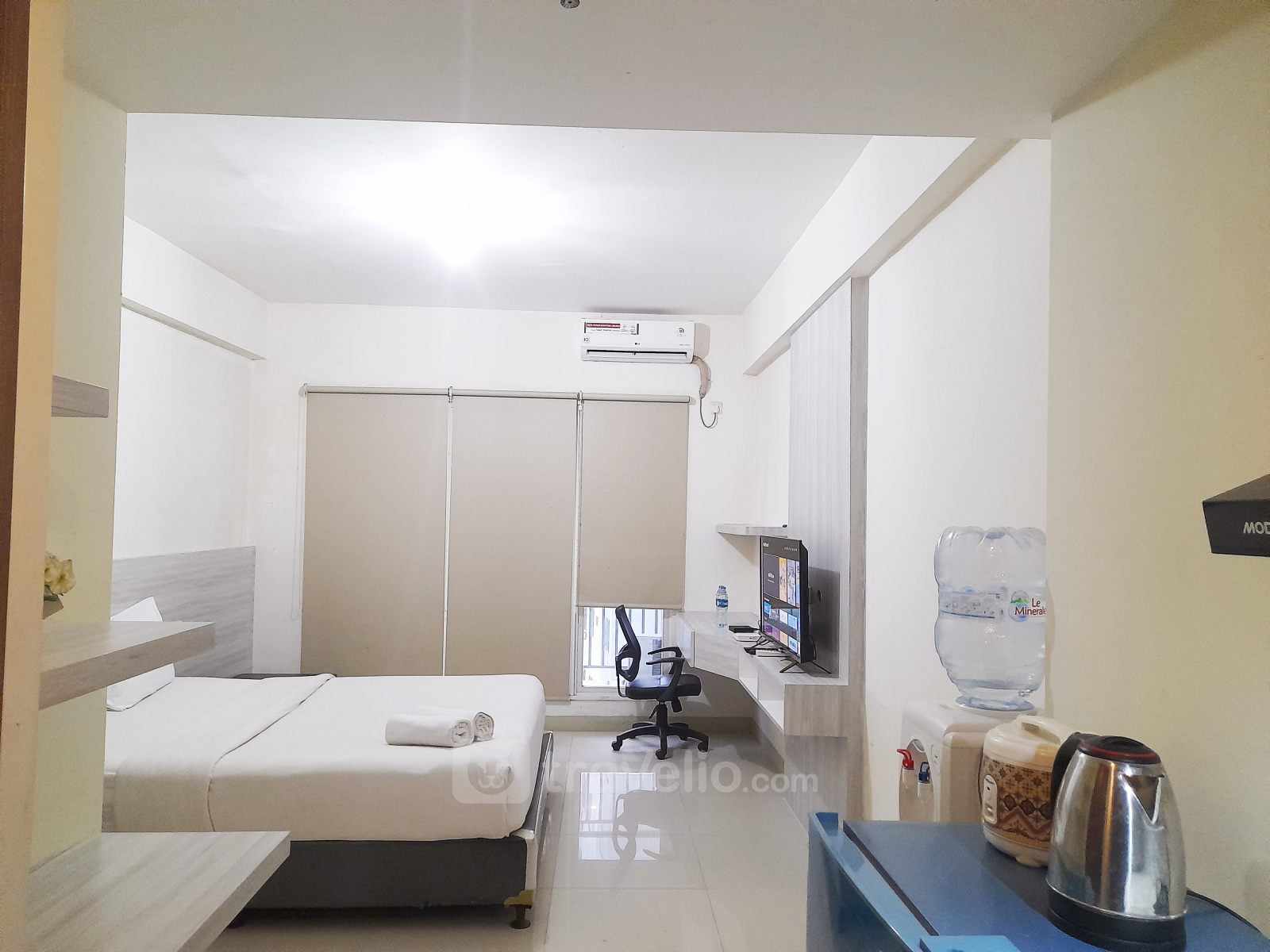 Perkenalkan, Minimalist Design Studio at Galeri Ciumbuleuit 3 Apartment By Travelio. Apartemen studio ini menawarkan ruang hidup yang ramping dan fungsional, sempurna untuk individu atau pasangan yang mencari gaya hidup kontemporer. Memiliki 1 kamar tidur studio, 1 kamar mandi, dan luasnya 33,24 meter persegi, unit ini memberikan cukup ruang bagi penghuni untuk menikmati kenyamanan dan gaya.