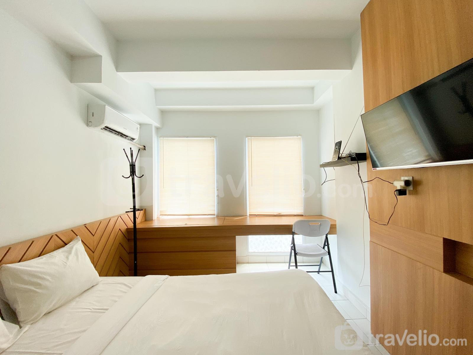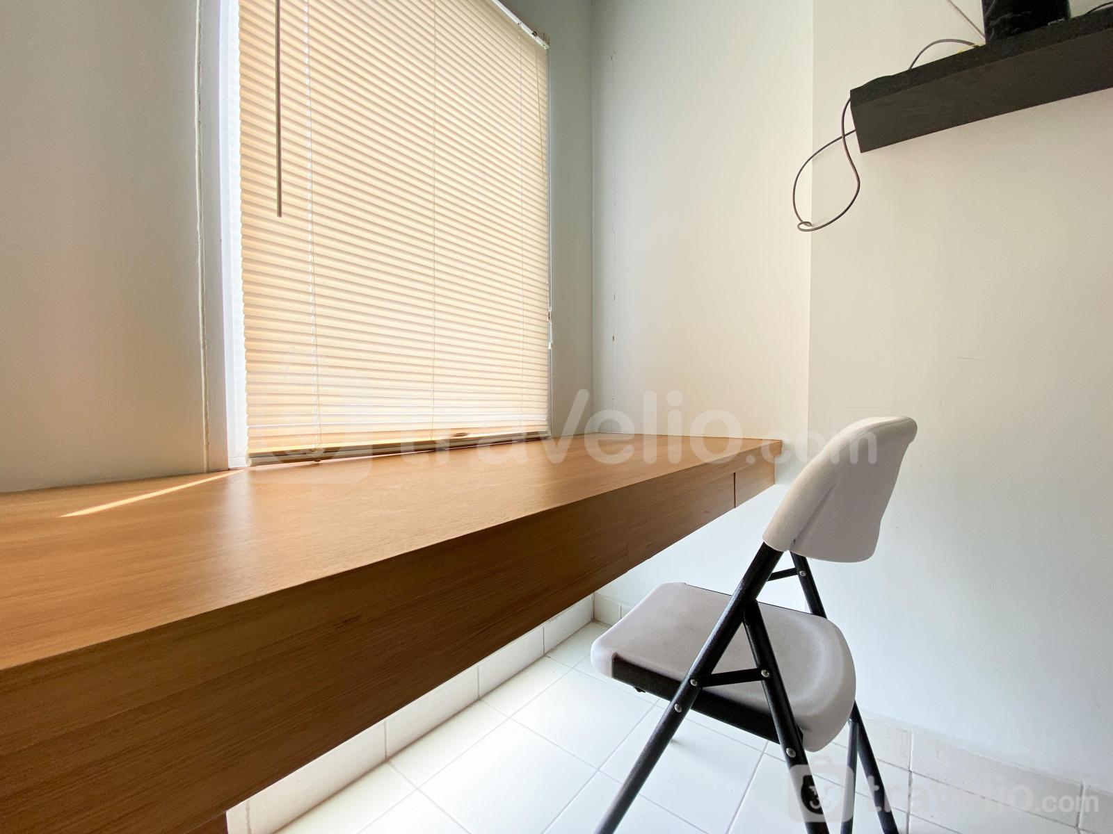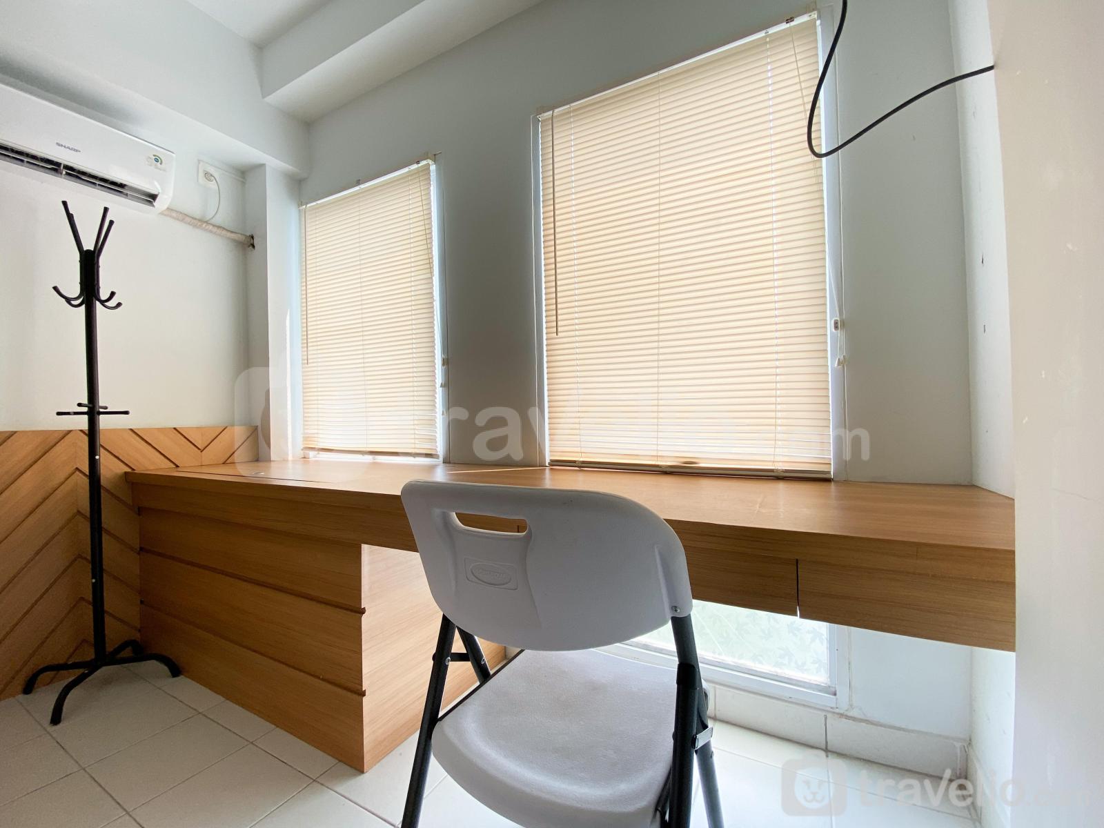 Fasilitas dalam ruangan unit apartemen milik Travelio juga sangat lengkap untuk menunjang kebutuhan anda sehari-hari. Unit apartemen ini memiliki tipe kasur Queen Bed (160x200) yang dibalut dengan linen berkualitas hotel berbintang. Unit apartemen ini memiliki luas 21.41 meter persegi sehingga membuat anda dapat beraktivitas dengan leluasa di unit apartemen ini. Apartemen milik Travelio dapat disewa secara bulanan dan tahunan. Dari unit apartemen ini, Anda bisa menikmati City View.